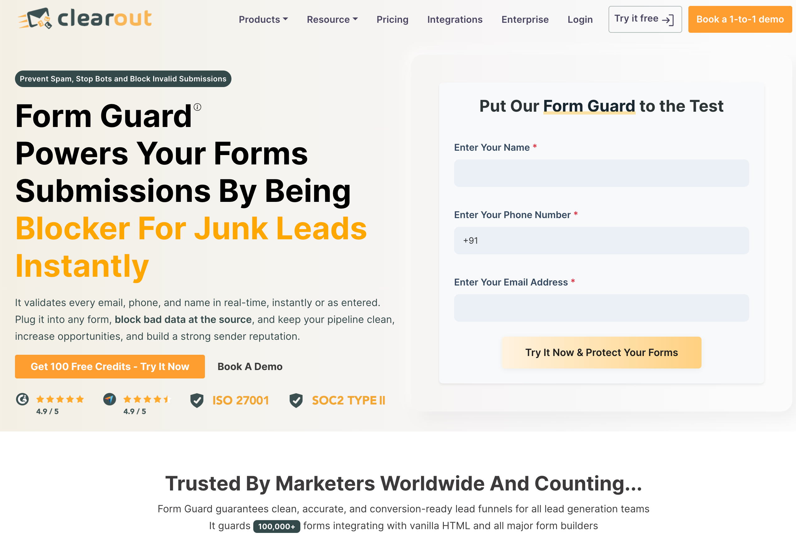 4. Validación en el Punto de Captura - La Validación de Correos Electrónicos con Javascript de Clearout puede prevenir proactivamente que los leads de spam ingresen a su sistema en el punto de captura. Se integra sin problemas con formularios en línea y páginas de destino como HubSpot Forms, Leadpages, WordPress Forms, y más para proteger su base de datos de correos falsos, desechables y malos.