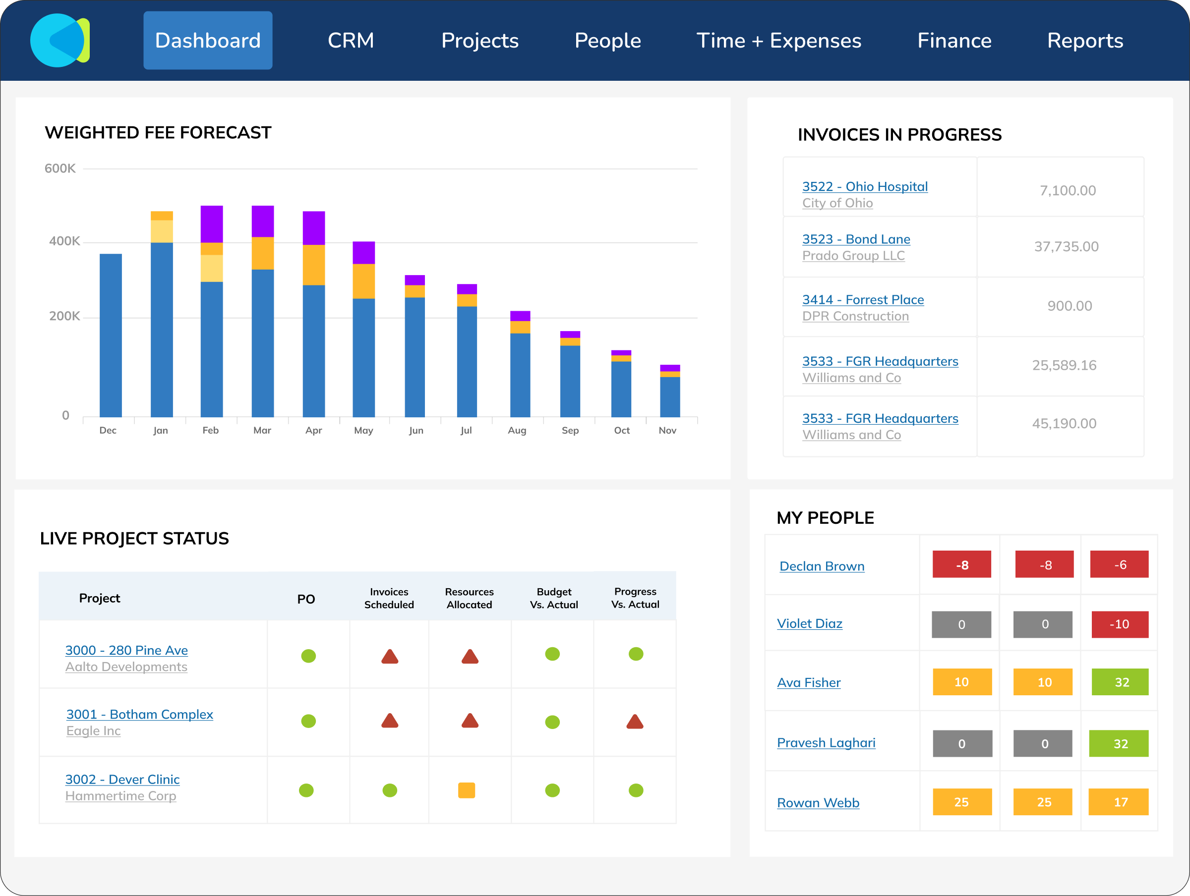 Ayudamos a las empresas basadas en proyectos a dejar atrás las hojas de cálculo y retirar herramientas caseras y ad hoc para brindarles visibilidad, claridad y control completos sobre su empresa. Ya sea ganando nuevos negocios, entregando proyectos, gestionando recursos, facturación o informes, todo se puede hacer en una plataforma fácil de usar.