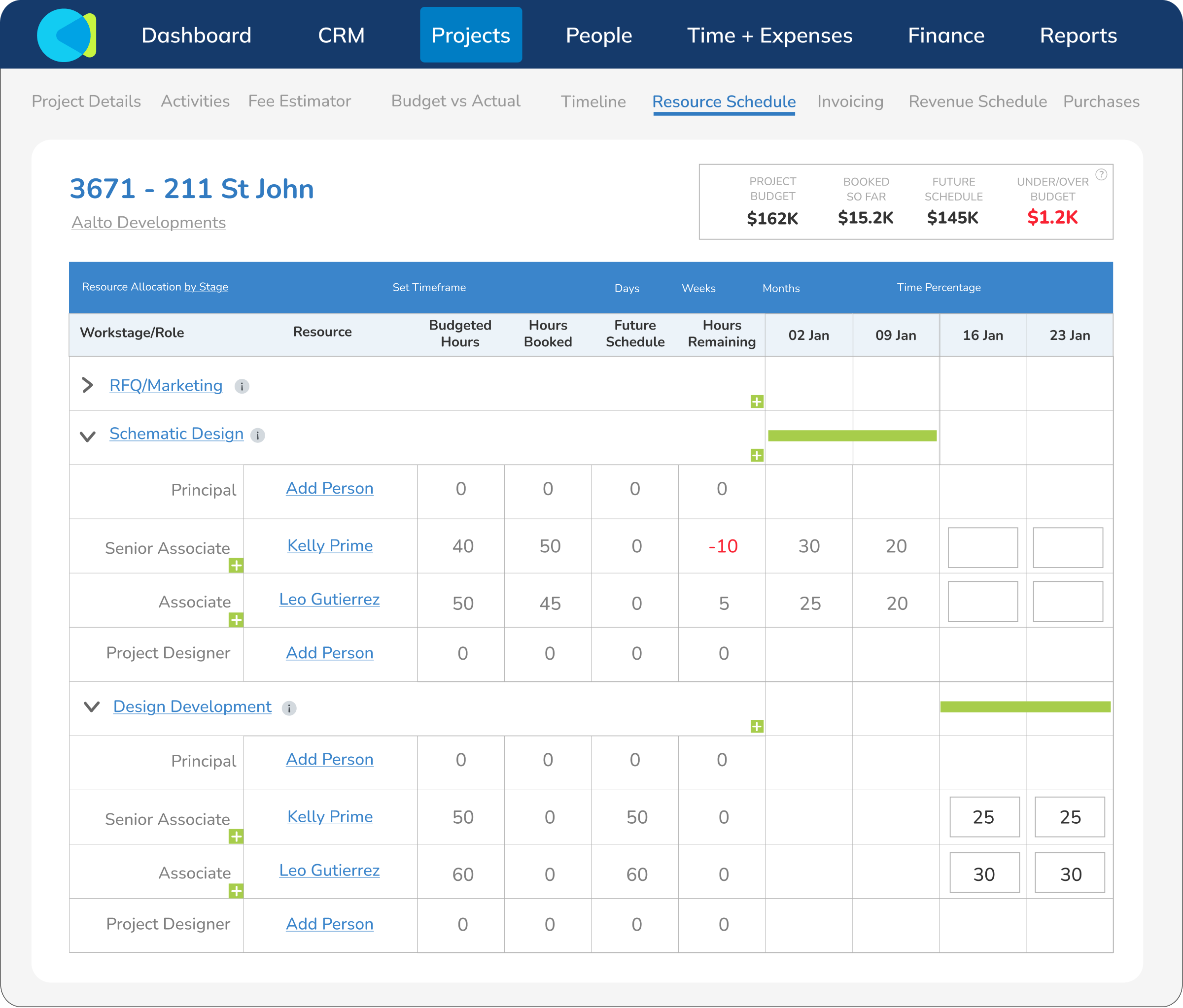 - Planificación de Recursos y Capacidad - Asigna a las personas adecuadas a los proyectos adecuados. Equilibra cargas de trabajo, identifica cuellos de botella temprano y toma decisiones basadas en datos sobre contratación y utilización.