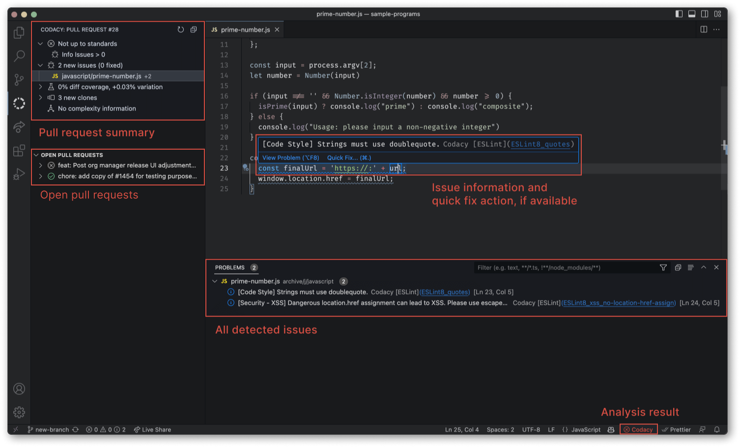 Las integraciones perfectas con Git e IDE hacen de Codacy un entrenador diario en el que tus desarrolladores pueden confiar, no solo otra pestaña del navegador. El código generado por IA no es una excepción, dejando hasta el 50% de tu base de código expuesta a una nueva ola de vulnerabilidades de día cero. Empodera a tus desarrolladores para usar Copilot y Cursor con confianza, no con preocupación.
