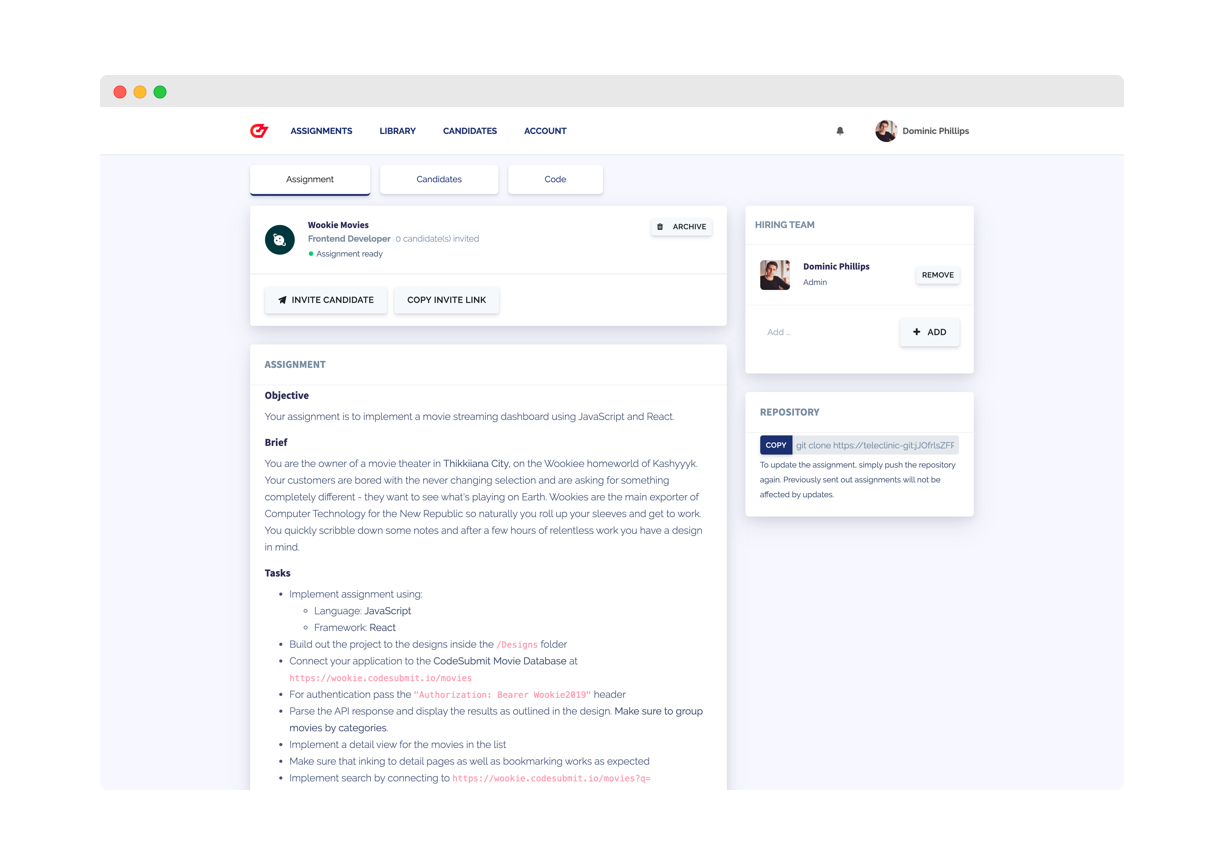 Hemos estado usando CodeSubmit durante aproximadamente 2 años para realizar nuestra evaluación de programación para candidatos técnicos. Ha sido muy fácil invitar a los candidatos, y además, cuando enviamos un correo electrónico al equipo de CodeSubmit con preguntas, siempre han sido muy receptivos y atentos. Reseña recopilada por y alojada en G2.com.