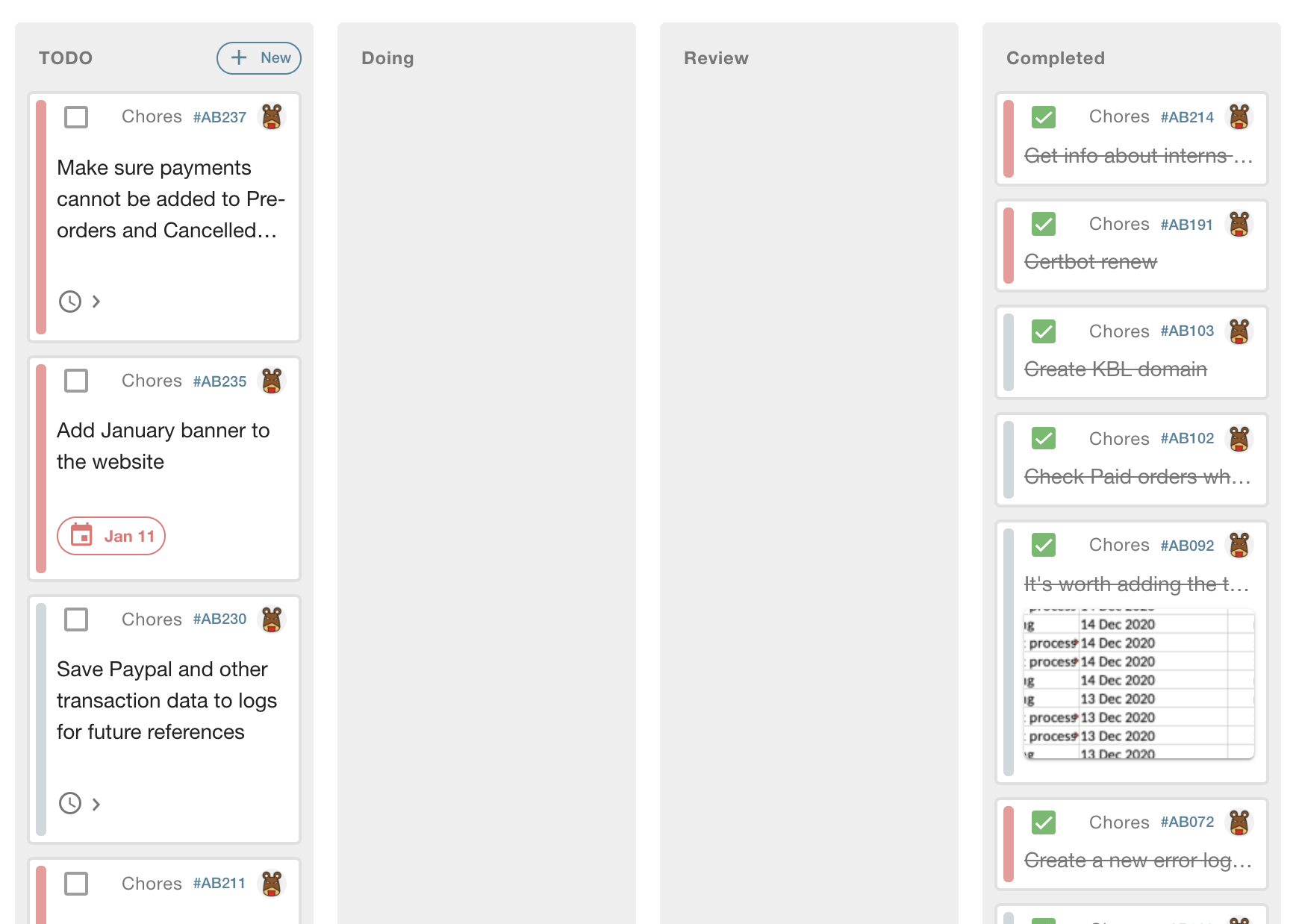 Creo que la interfaz de Kanban necesita un rediseño para una mejor comprensión y uso en relación con múltiples proyectos en curso en un flujo paralelo para que funcione de manera diferente. Reseña recopilada por y alojada en G2.com.