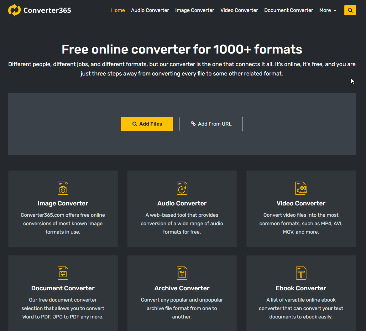 1. El sitio web de soporte de convertidores máximo como imágenes, videos, archivos, etc.