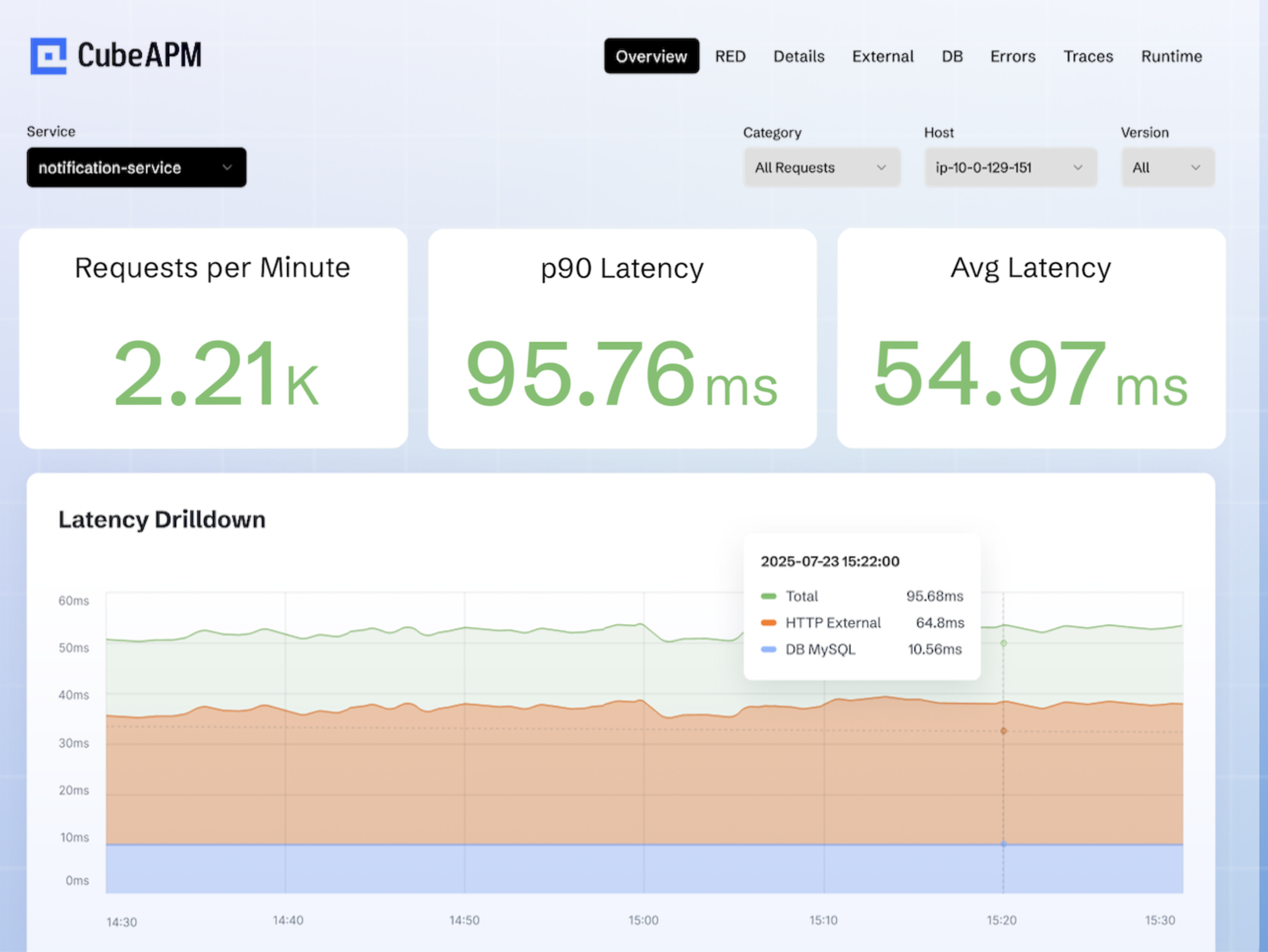 CubeAPM es una plataforma de observabilidad y monitoreo del rendimiento de aplicaciones (APM) nativa de OpenTelemetry que ayuda a los equipos de ingeniería y DevOps a monitorear aplicaciones, infraestructura, registros y métricas desde un único panel unificado.