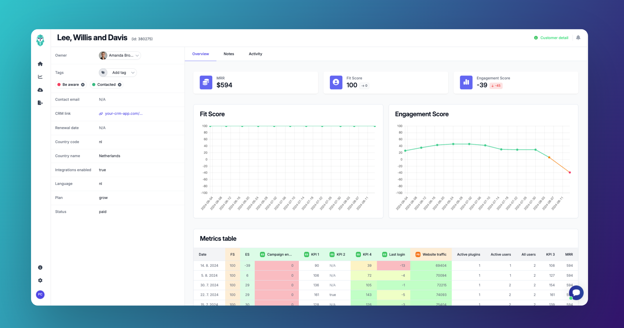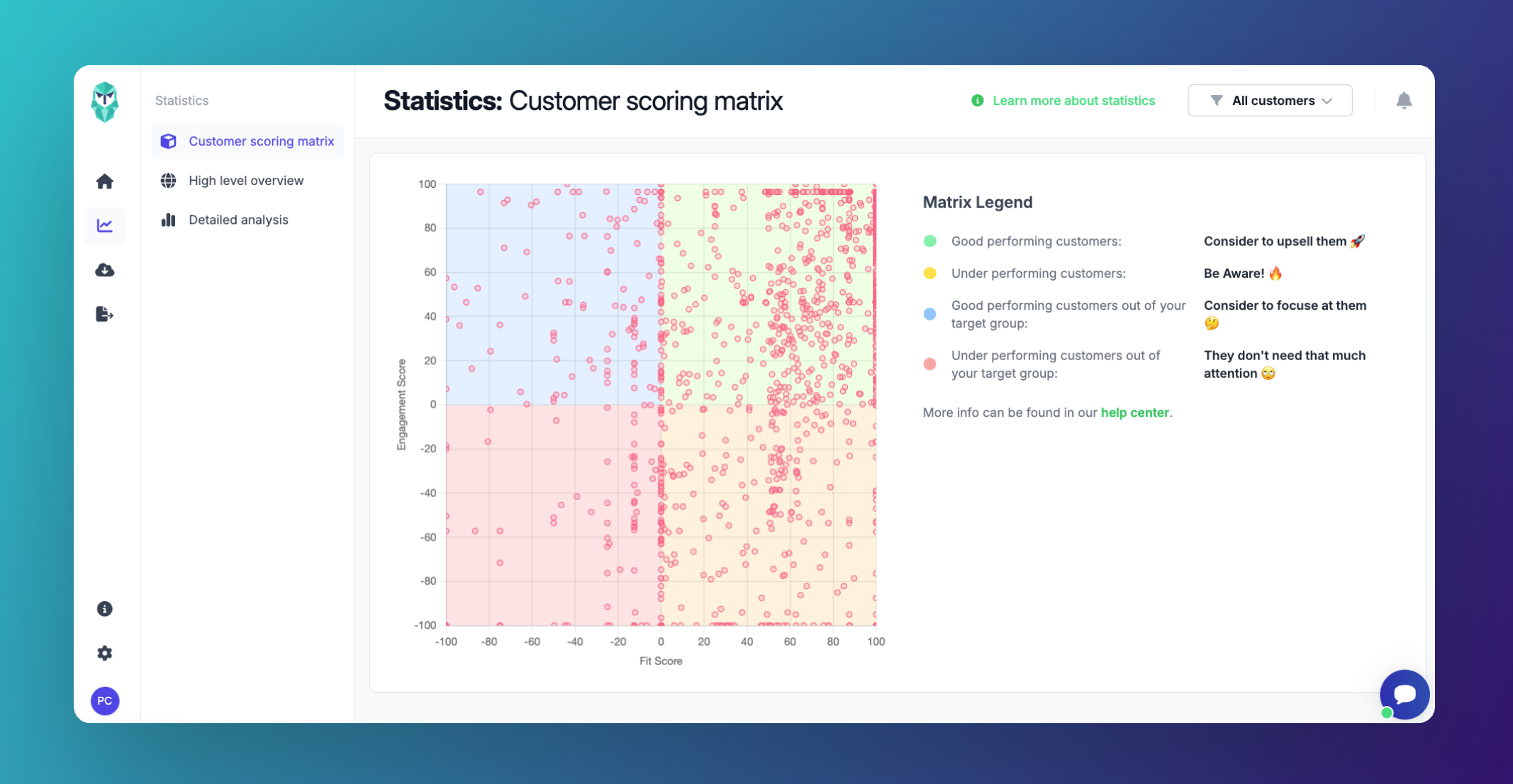 La puntuación y los segmentos de clientes facilitan ver quién necesita atención rápidamente. Reseña recopilada por y alojada en G2.com.