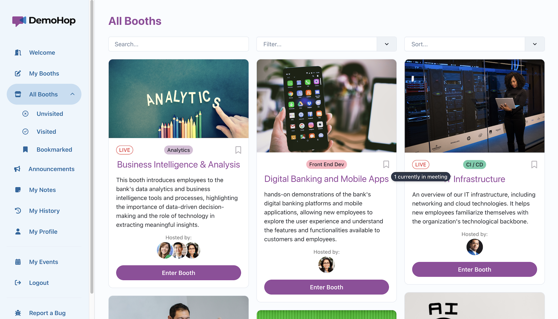 Lo que más aprecio de DemoHop es lo sencillo e intuitivo que es de usar, incluso para personas que no son particularmente expertas en tecnología. La plataforma está diseñada con una interfaz limpia y moderna que hace que la navegación sea fácil, ya sea que estés organizando un seminario web, realizando una demostración o compartiendo contenido con clientes. También me gusta lo rápido que se pueden configurar y personalizar las sesiones, lo que ahorra una cantidad significativa de tiempo en mi flujo de trabajo diario. El rendimiento general es fluido, y la experiencia del usuario se siente pulida y confiable. Reseña recopilada por y alojada en G2.com.