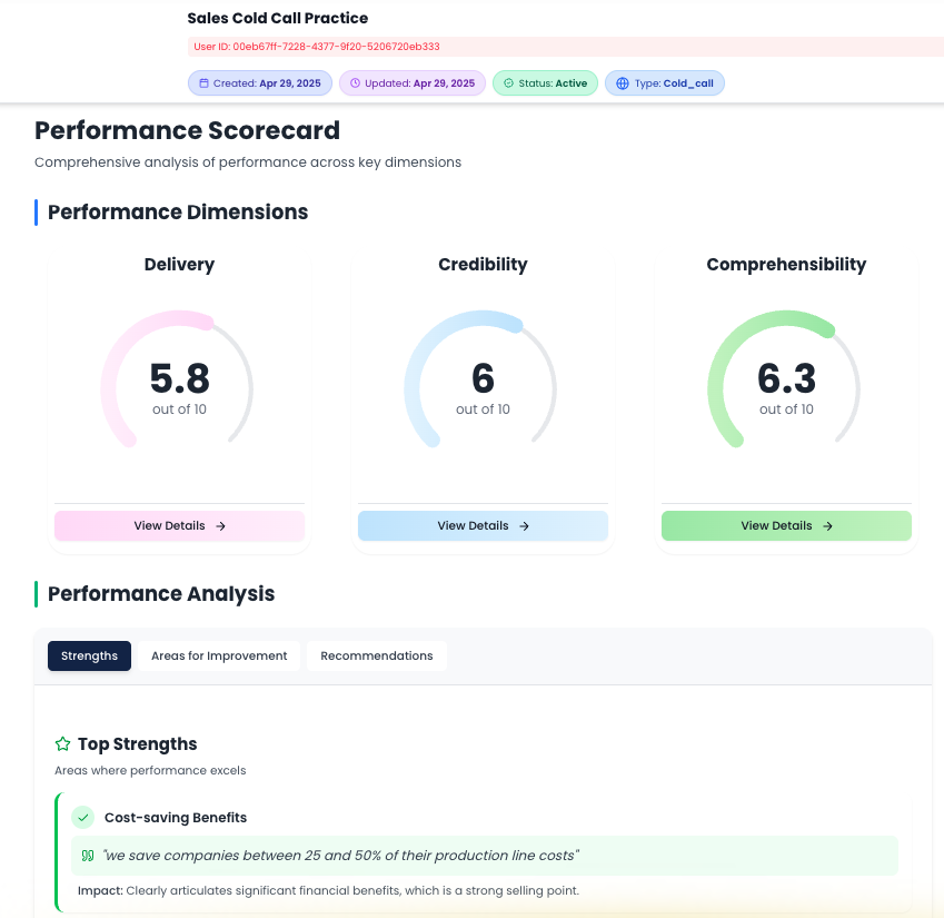 • La retroalimentación posterior a la llamada mejora la siguiente conversación.