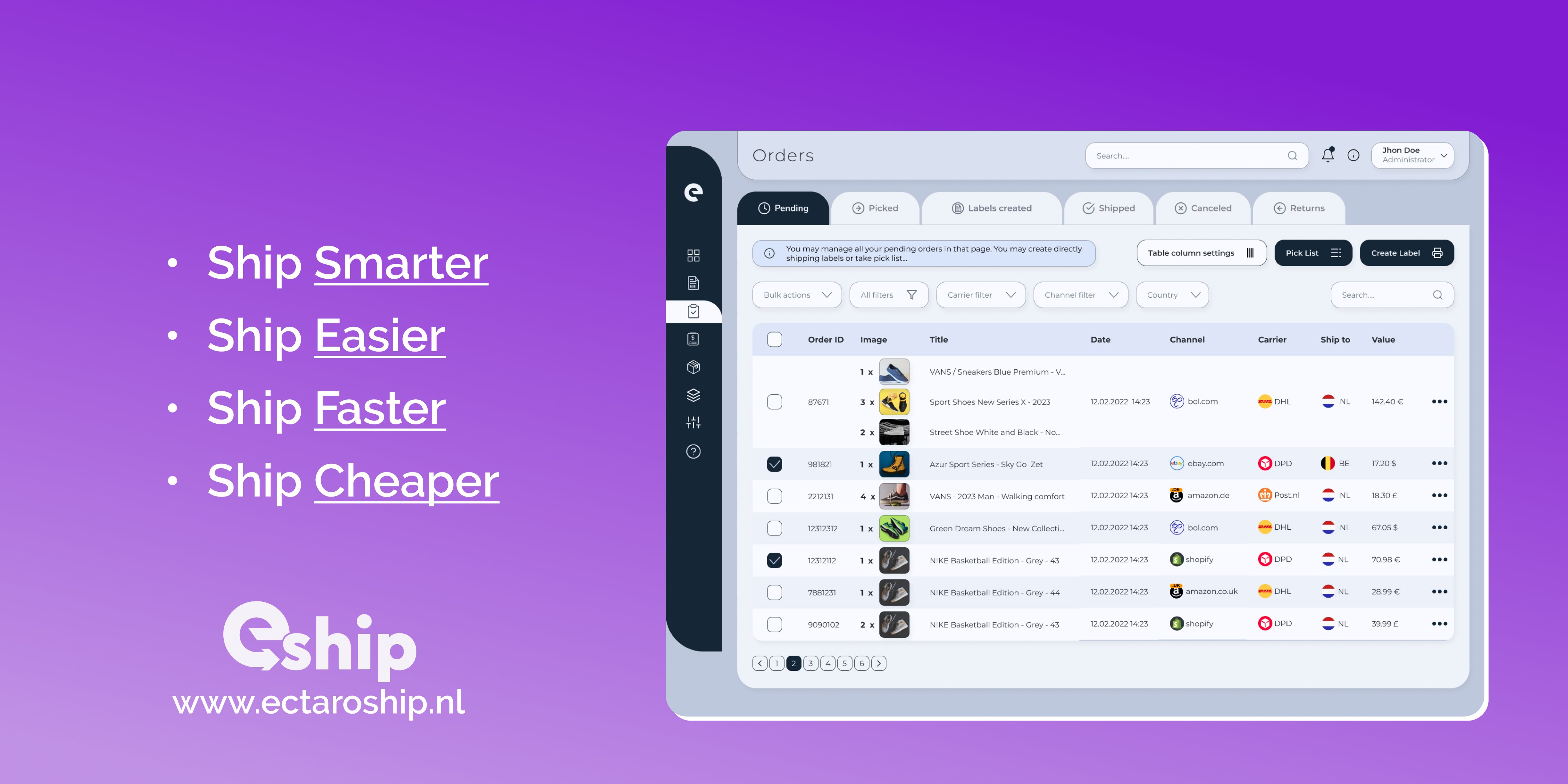 Shiptheory transforma su proceso de envío, haciéndolo más fácil que nunca para conectar sus canales de ventas con los mensajeros que prefiere, todo desde una sola plataforma. Al simplificar tareas como la creación de etiquetas, actualizaciones de seguimiento y gestión de devoluciones, estamos aquí para ahorrarle tiempo valioso. Nuestra plataforma está diseñada no solo para simplificar la logística, sino también para elevar la experiencia de entrega de sus clientes desde el momento de la compra hasta el punto de devolución, ayudándole a expandir el alcance de su negocio con confianza. Shiptheory se encarga del desafío logístico, dándole más tiempo para centrarse en lo que realmente importa: hacer crecer su negocio.