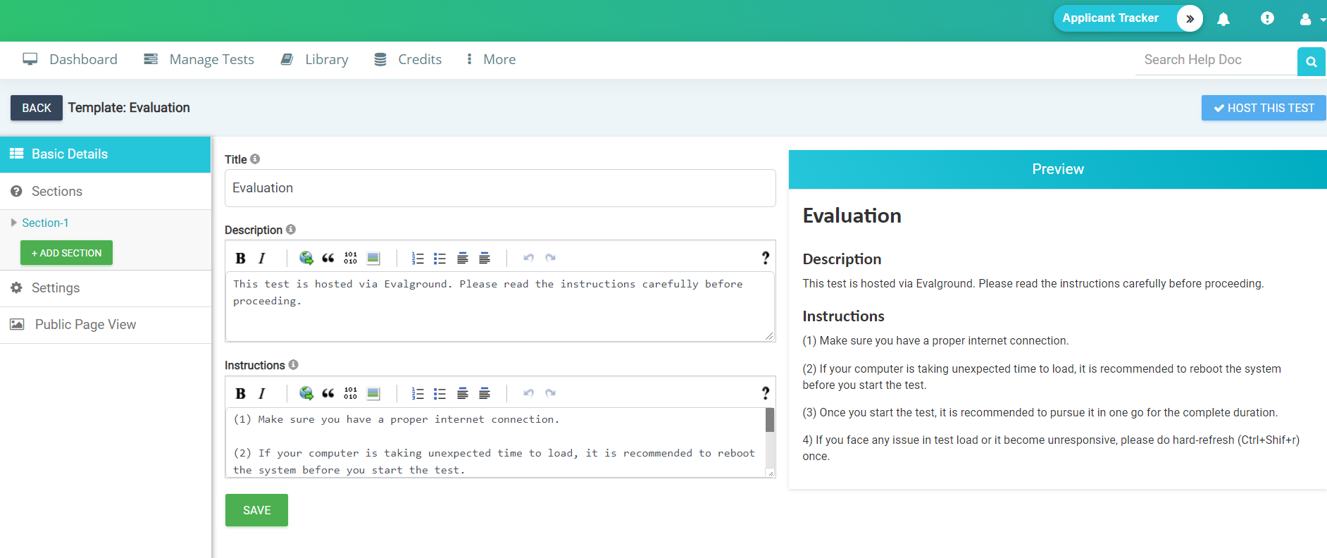 Test creation on EvalGround is very easy and it can be done in couple of minutes.