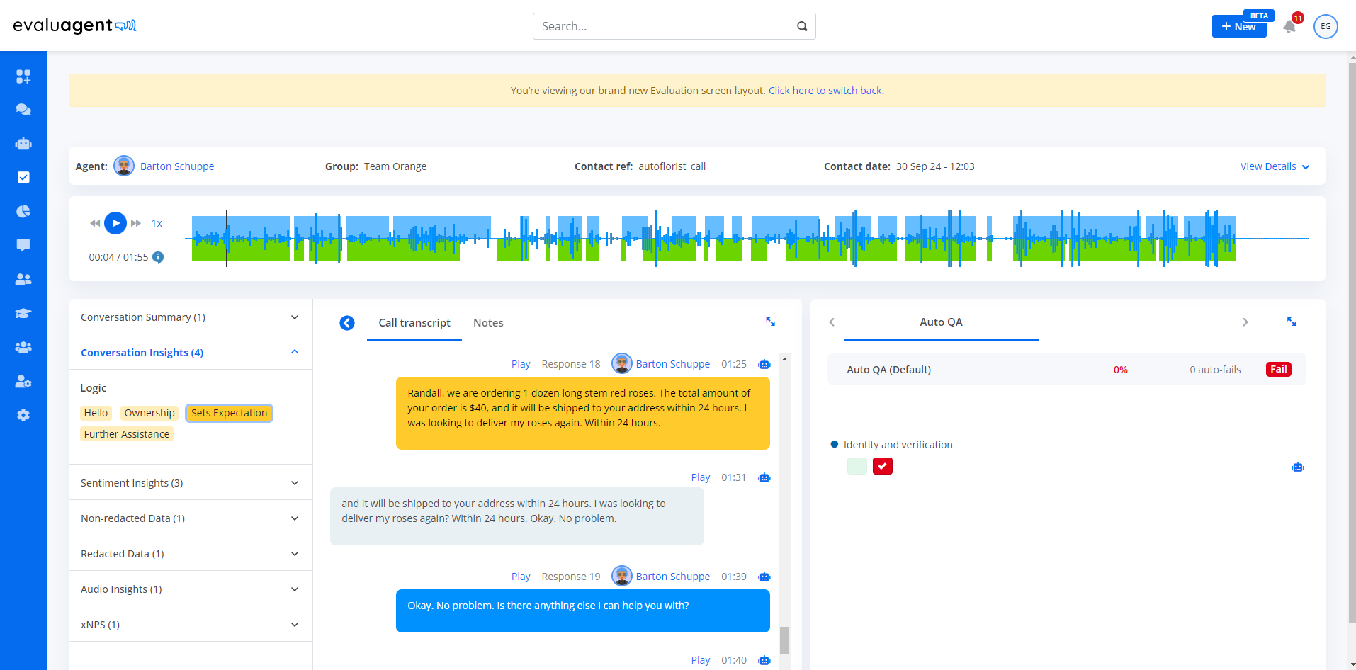Como miembro del Equipo de Enmiendas de Operaciones en loveholidays, hemos estado utilizando recientemente EvaluAgent para evaluar y mejorar la calidad de nuestro servicio al cliente. Considerándolo todo, la plataforma ha mejorado enormemente nuestras operaciones diarias, y estoy bastante contento con ella. Dado que ahorra mucho tiempo, es sencillo revisar mis puntuaciones de calidad en detalle en lugar de contactar a mi supervisor de antemano. Reseña recopilada por y alojada en G2.com.