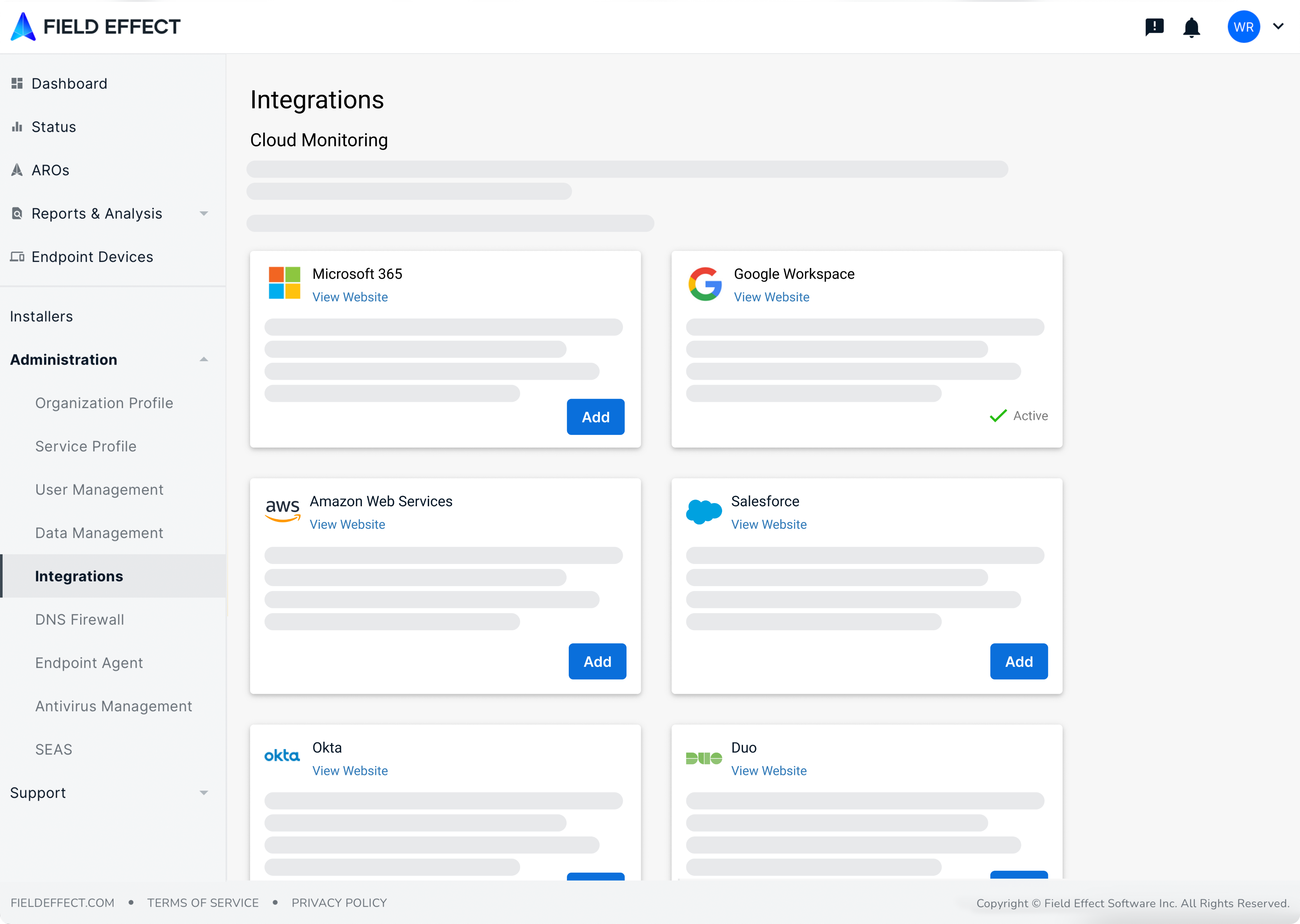 Field Effect MDR connects effortlessly with leading cloud and identity platforms like Microsoft 365, Google Workspace, AWS, Salesforce, Okta, Duo, and many more.