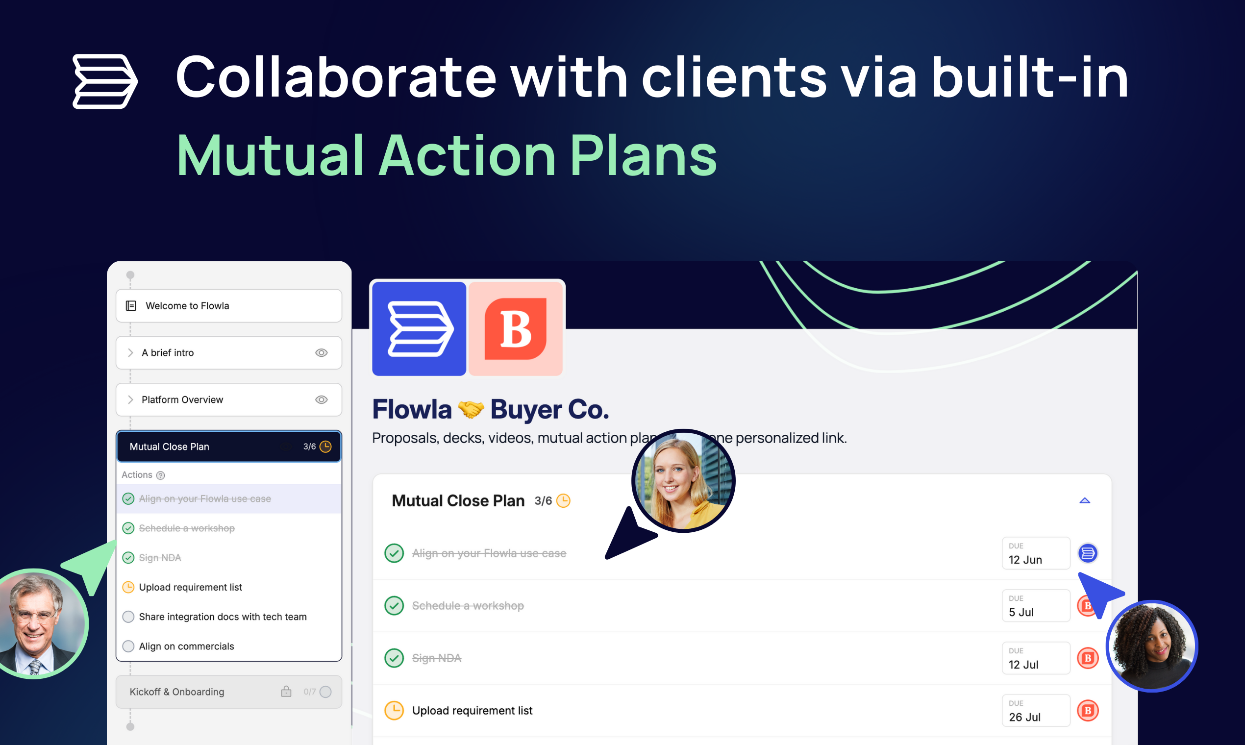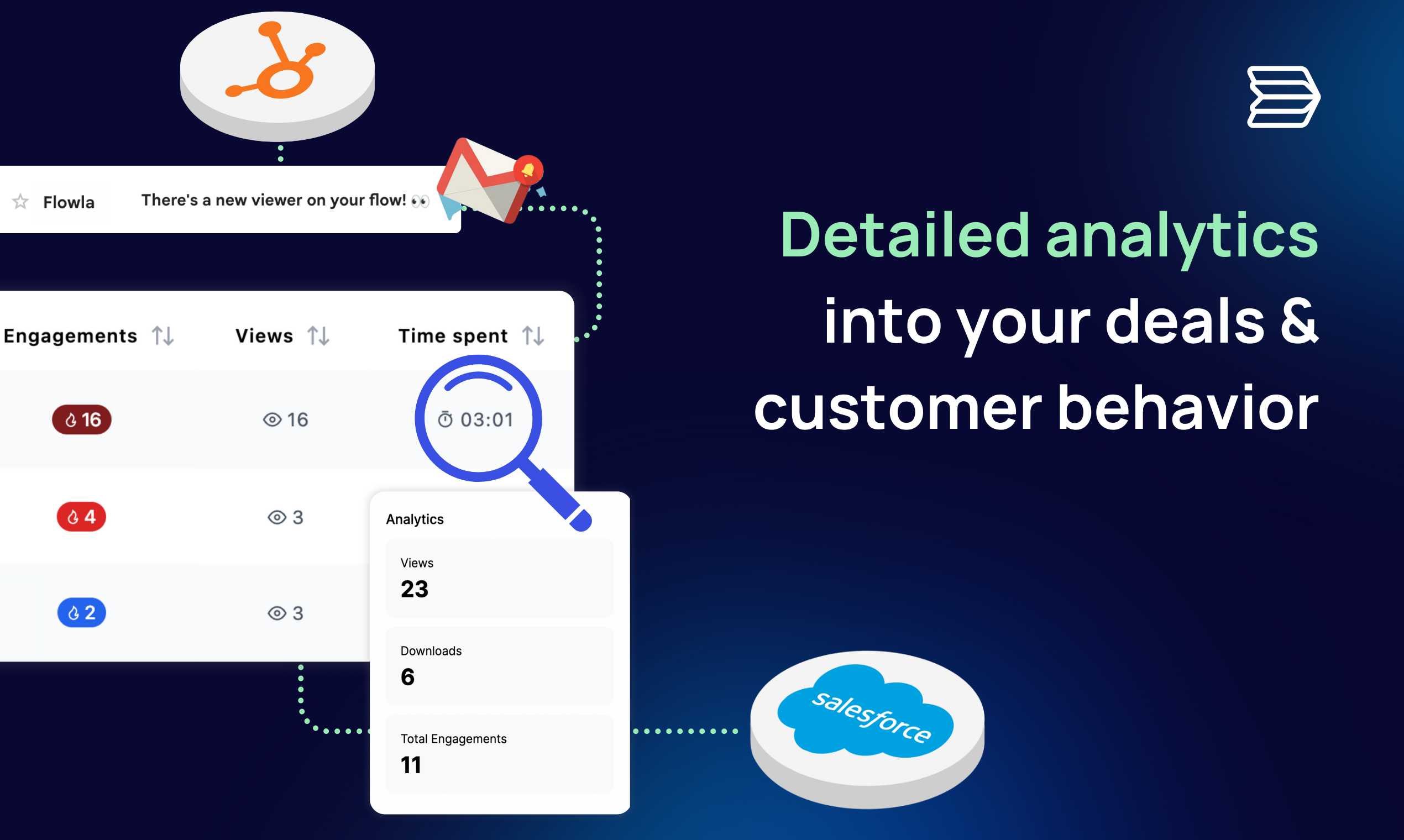 ¡Los análisis de participación de los interesados dentro de Flowla son una mina de oro para mi equipo! Podemos ver exactamente en qué contenido un prospecto pasa más tiempo, qué resuena con ellos, qué títulos y personas suelen estar involucrados durante las ventas, y cómo se desarrolla el proceso. Todo esto nos ayuda a refinar nuestro mensaje, dirigirnos a las personas correctas en nuestros esfuerzos de marketing, construir un proceso que se ajuste a las expectativas del comprador y ser mucho más intencionales en nuestro marketing y ventas.