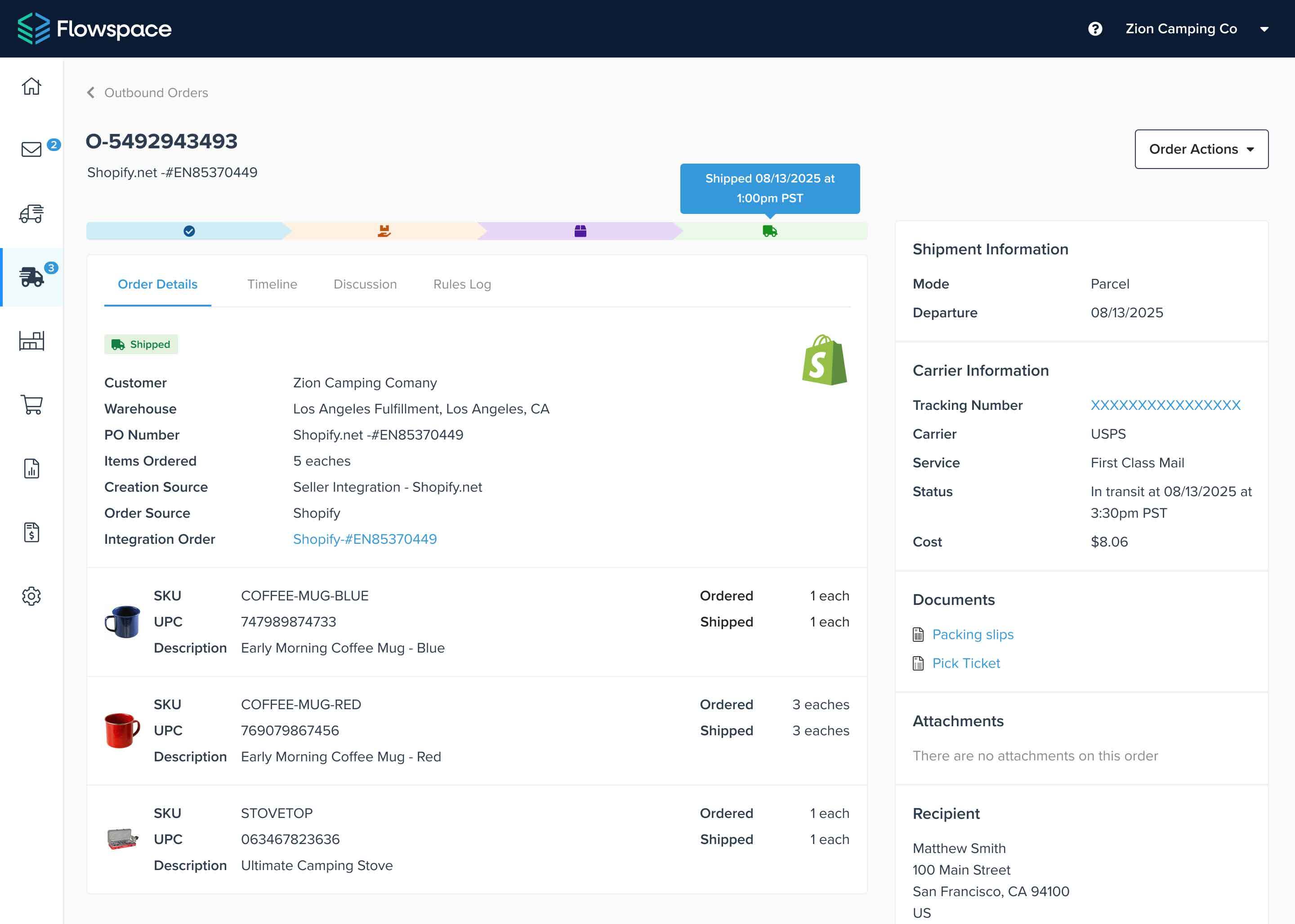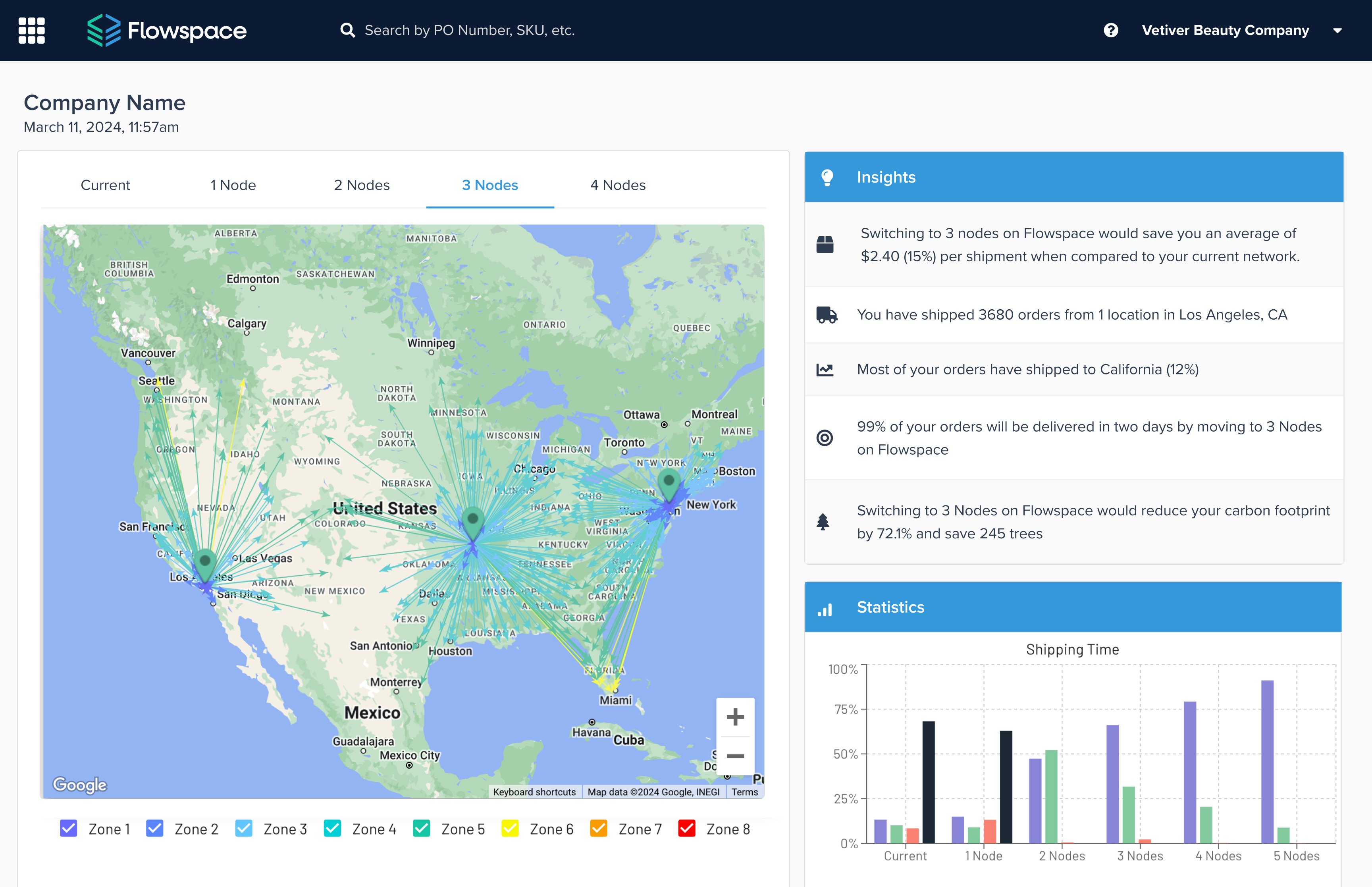 Al consolidar el cumplimiento en una sola plataforma, Flowspace reduce la complejidad de gestionar múltiples socios o instalaciones logísticas. Las empresas pueden expandirse por todo el país sin asumir arrendamientos de almacenes o personal, mientras mantienen visibilidad y control centralizados sobre sus operaciones.