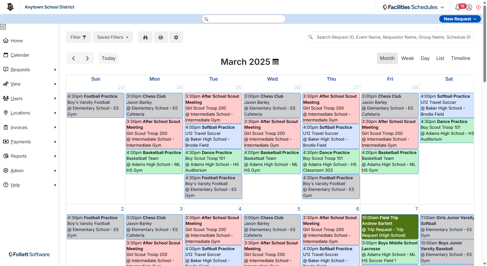 Follett Facilities Schedules es una solución de software de programación de instalaciones intuitiva diseñada para ayudar a los distritos escolares a gestionar sus instalaciones de manera eficiente. Este software centraliza el proceso de programación, permitiendo a los usuarios simplificar la gestión de eventos y asegurar que todas las actividades sean fácilmente accesibles. Al automatizar los flujos de trabajo y mejorar la comunicación, Facilities Schedules aborda los desafíos únicos que enfrentan las instituciones educativas al coordinar varios eventos y actividades en múltiples instalaciones. Estas características son parte de las soluciones integradas ofrecidas por Follett Software, diseñadas para unificar los flujos de trabajo entre departamentos, eliminar silos y fomentar la colaboración.