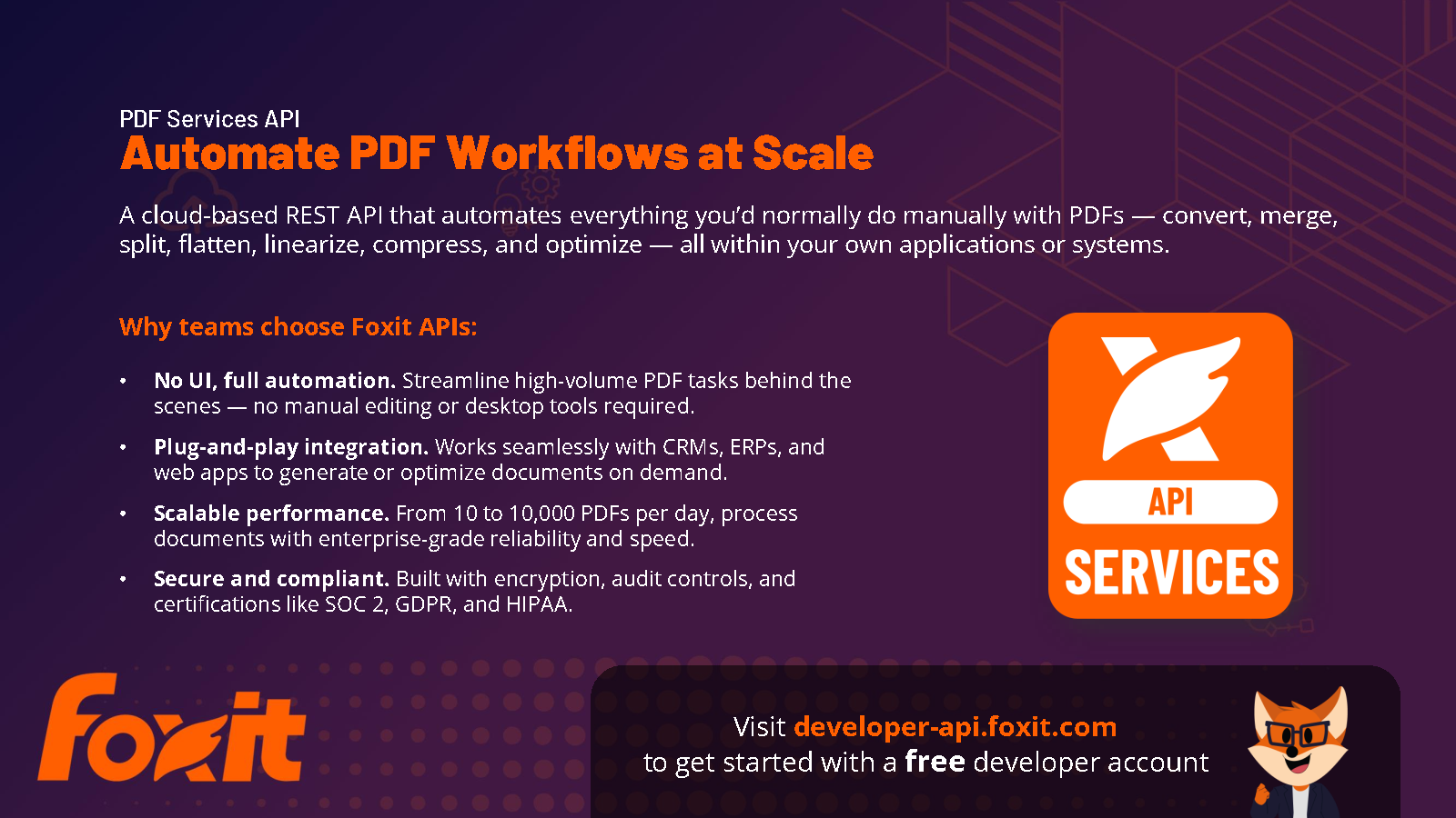 No hay suficientes reseñas de Foxit Document Workflow APIs para que G2 proporcione información de compra. A continuación, se muestran algunas alternativas con más reseñas: