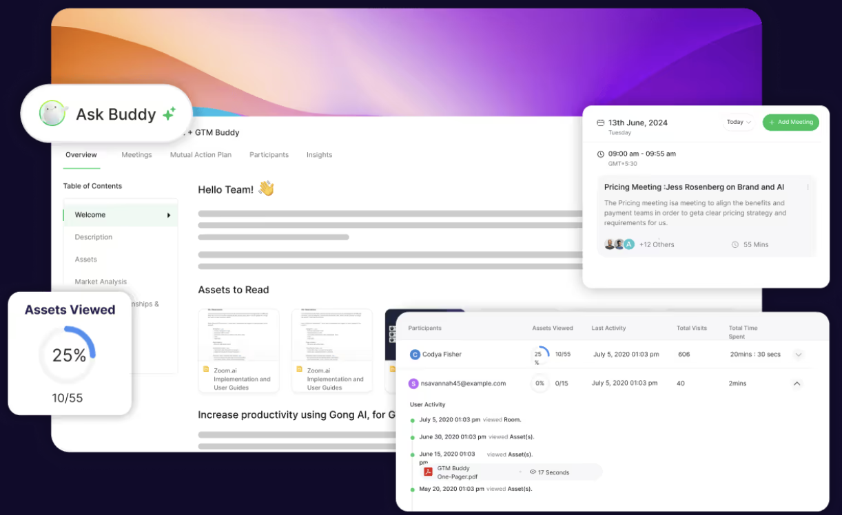 GTMBuddy es una solución fácil y completa para todos mis materiales. He creado Salas de Ventas Digitales para muchos de mis prospectos y ha sido de gran ayuda para entender quién vio qué material y por cuánto tiempo.
