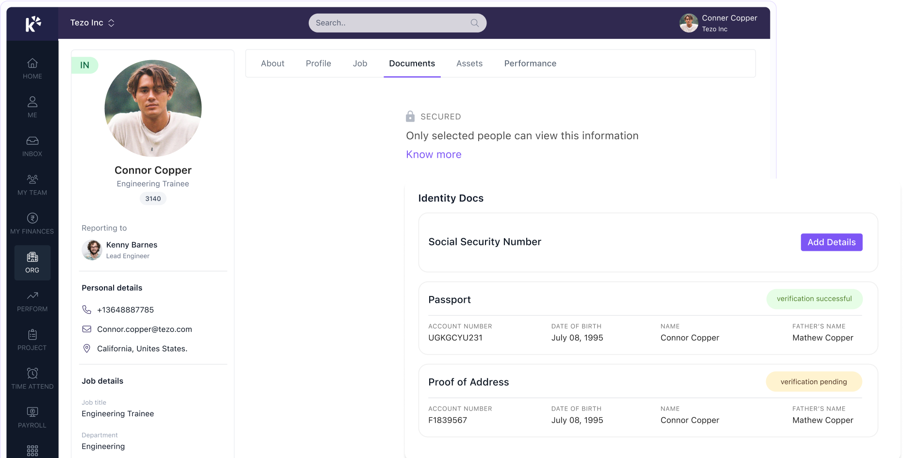Lo que más me gusta de Keka es lo sencillo e intuitivo que es de usar. La interfaz de usuario es limpia, y facilita las operaciones rutinarias de recursos humanos como la asistencia, la gestión de permisos y la nómina. Ahorra tiempo y organiza todo en un solo lugar. En general, hace que el trabajo parezca un poco más fácil. Reseña recopilada por y alojada en G2.com.