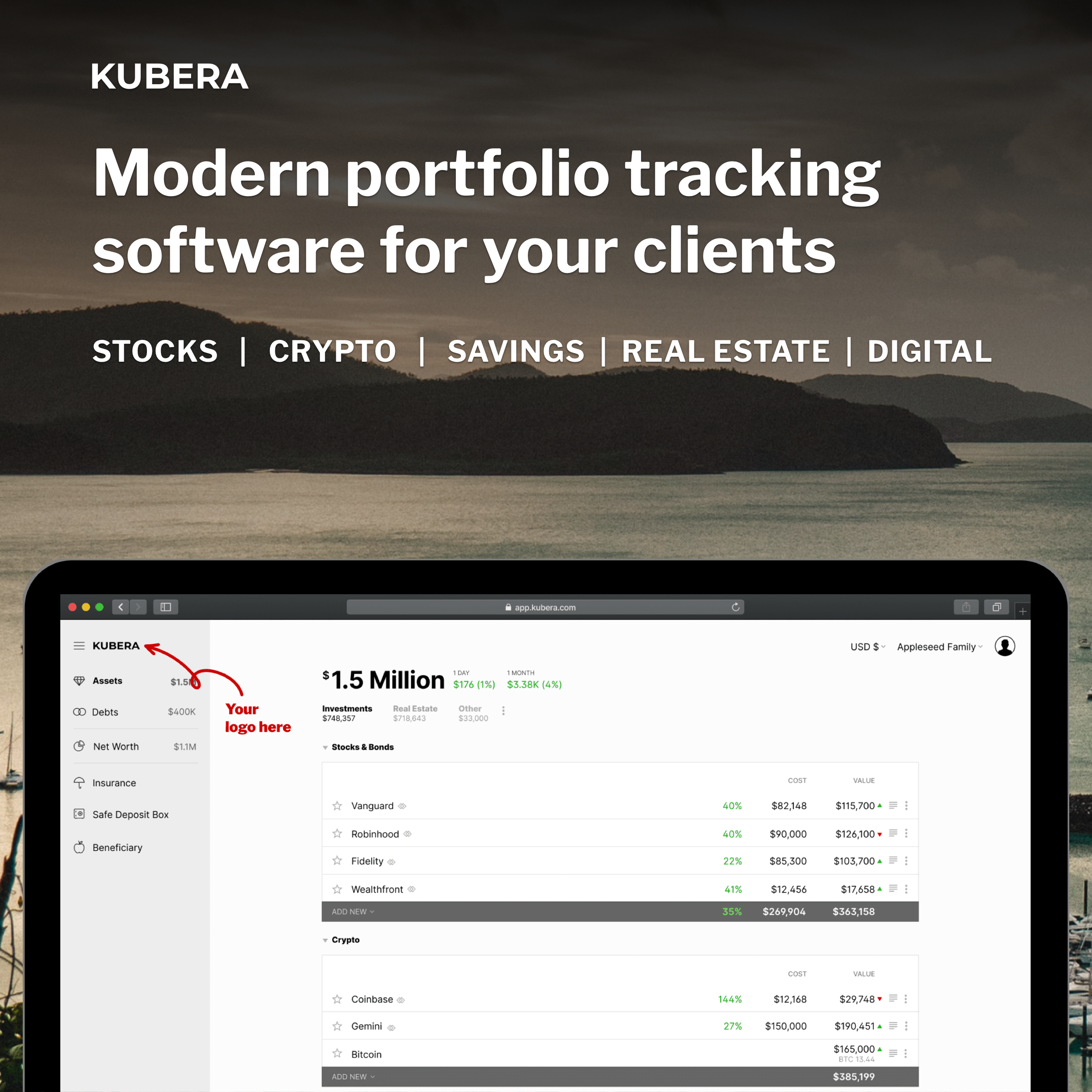 Kubera, una herramienta de seguimiento de cartera y patrimonio neto: Kubera es una herramienta premium que permite a los usuarios rastrear sus inversiones, criptomonedas y otros activos y pasivos. Es fácil de usar. Reseña recopilada por y alojada en G2.com.