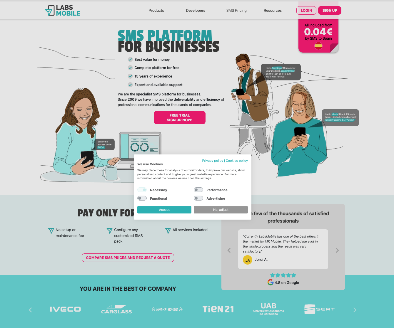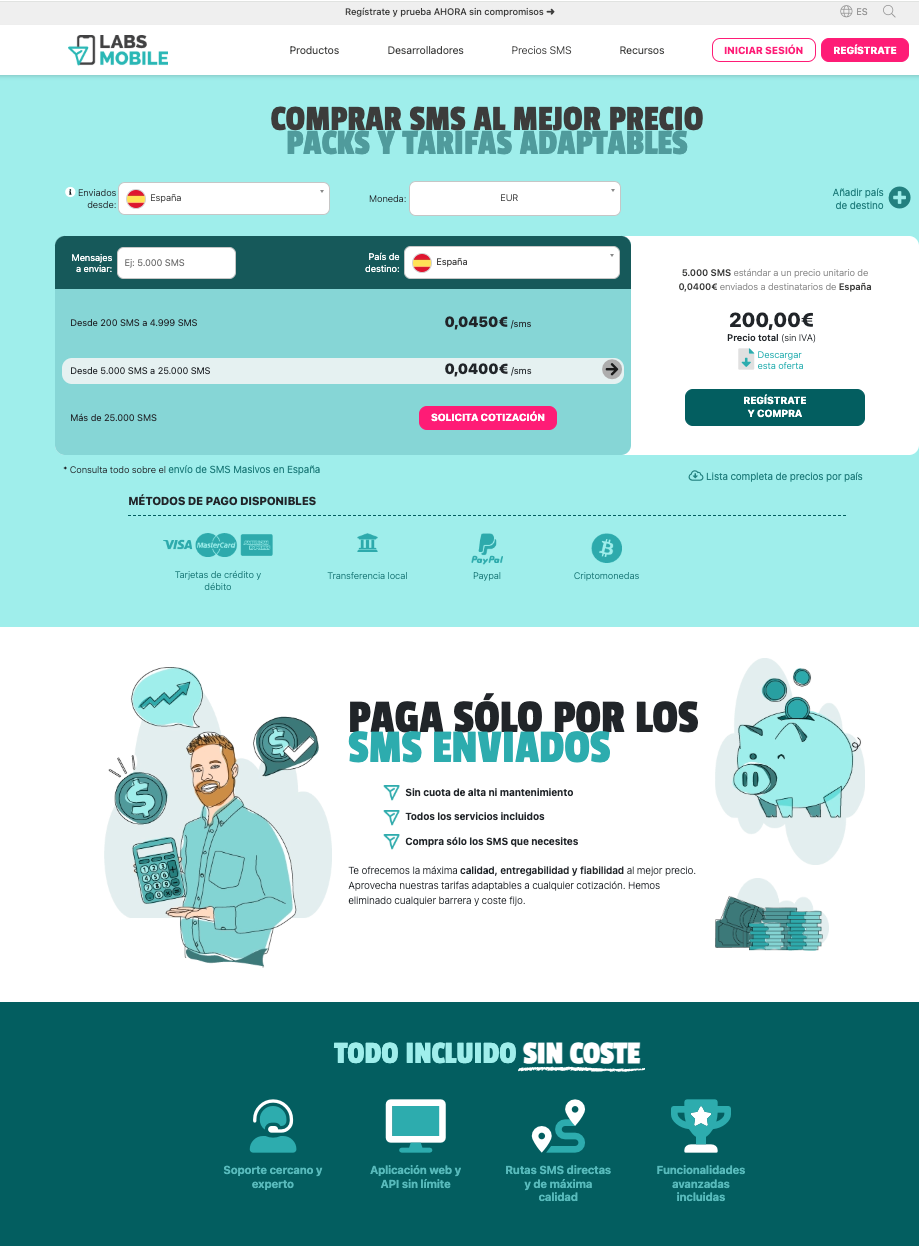 With over 15 years in the sector, global presence, and a team committed to innovation and the success of its clients, LabsMobile is one of the most specialized and reliable SMS providers in the current market.