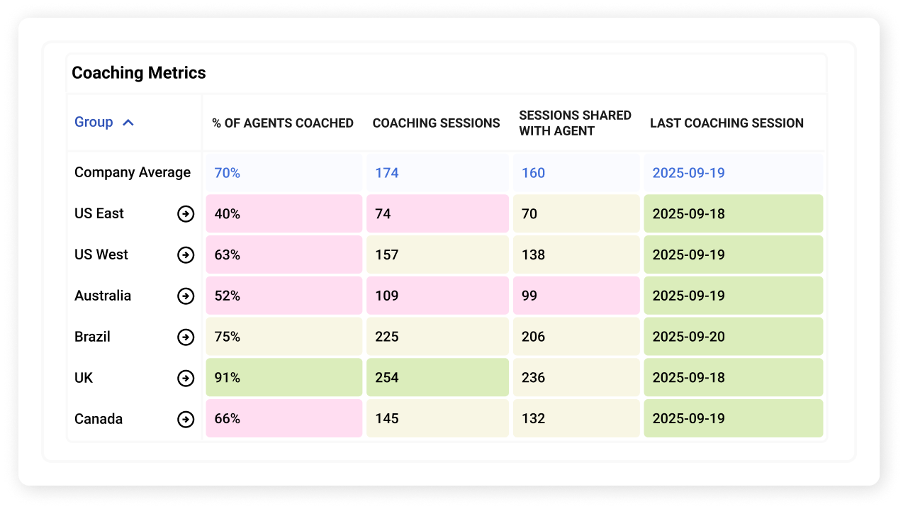 El proceso de creación de la tarjeta de puntuación (rúbrica) y la experiencia del usuario al calificar es muy lógico y fantástico al momento de la implementación. Y la Plataforma de Coaching es su segunda mayor fortaleza. ¡Múltiples formas de rastrear sesiones, así como elementos de coaching y tareas pendientes, hacen que la experiencia sea verdaderamente accionable y poderosa!