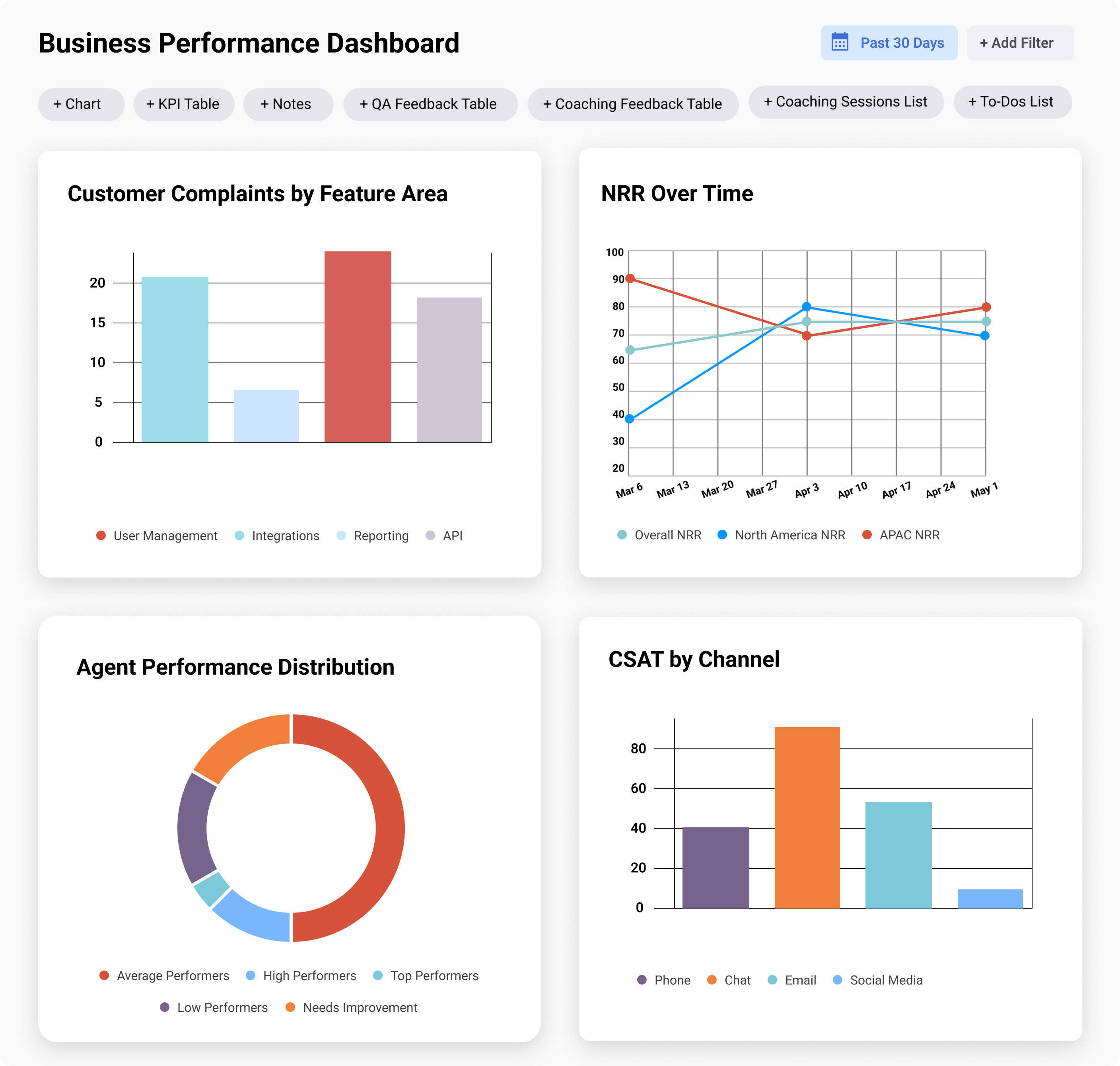De un proveedor anterior cuya herramienta es muy fácil de usar PERO limitada de varias maneras, ¡MaestroQA cambia completamente el guion! La experiencia del agente es tan completa y detallada como su equipo de QA quiera que sea. Los paneles de rendimiento se pueden personalizar para casi CUALQUIER caso de uso y adaptarse a sus necesidades. Además, puede hacerlos accesibles a grupos/equipos o usuarios individuales según sea necesario. Las opciones para profundizar en métricas y KPIs son como nada que haya encontrado antes y, en algunos aspectos, supera la experiencia que tendría con una interfaz de Looker o Tableau. Las métricas/datos son el pan y la mantequilla de Maestro, así que si usted es un equipo de QA/CS con un enfoque más orientado al detalle sobre lo que está sucediendo en sus equipos de soporte O quiere impulsarlos a crecer, ¡ESTA es su herramienta!