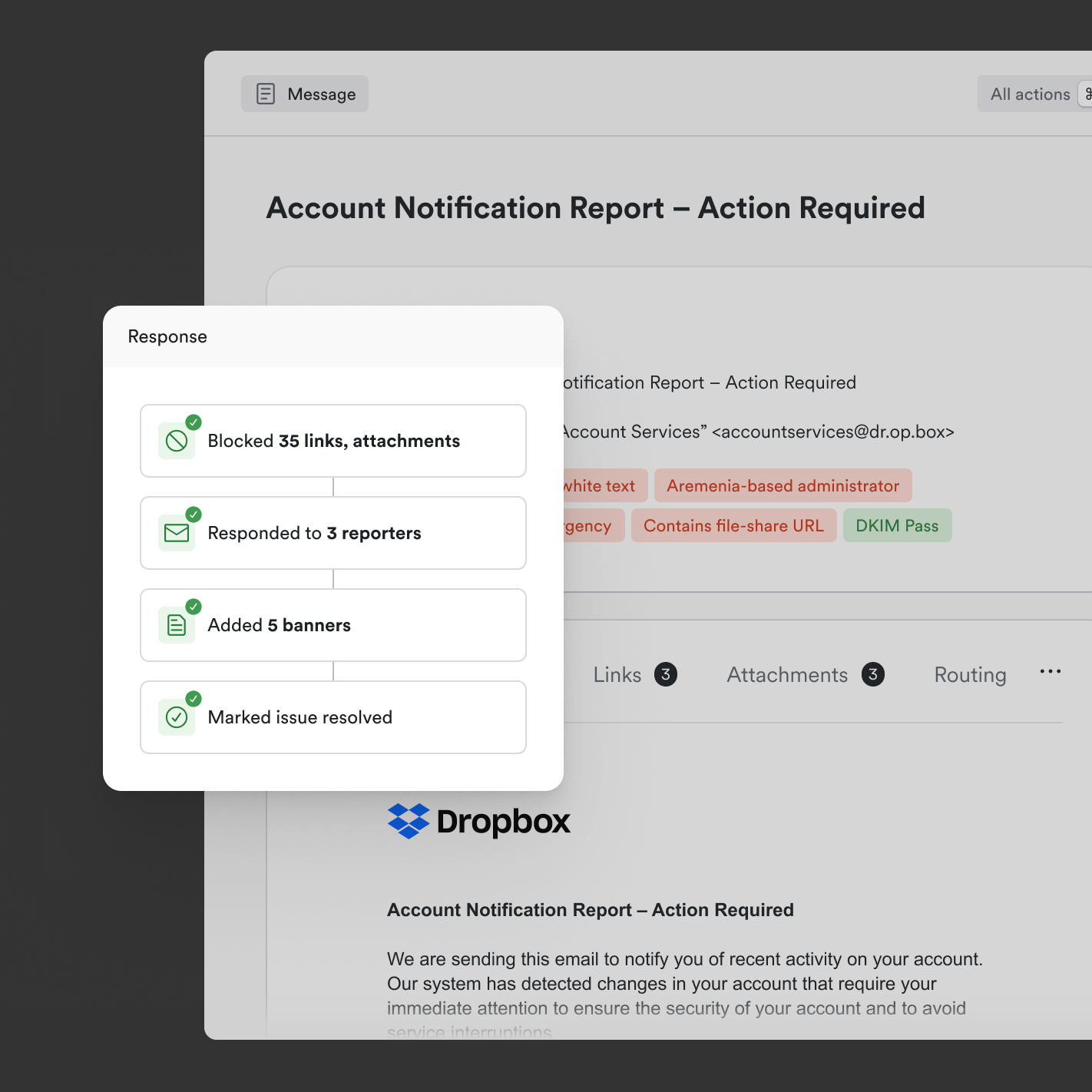 Me gusta que Material Security pueda proporcionar remediación en tiempo real para intentos de phishing y ayude a encontrar y agrupar automáticamente mensajes similares en toda la organización. Esto facilita que el equipo de seguridad proteja rápidamente y de manera eficiente a la organización sin realizar investigaciones manuales. Además, la función de "informar mensaje sospechoso" es sencilla para que los usuarios la comprendan y utilicen, lo que les ayuda a sentirse capacitados para ayudar a proteger la organización. Reseña recopilada por y alojada en G2.com.