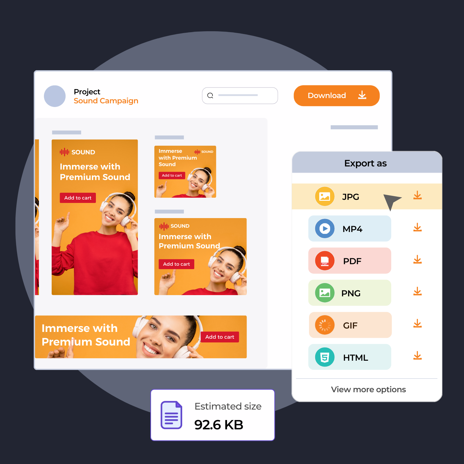 Inteligencia Artificial impulsada generador de anuncios creativos y banners para mejores tasas de conversión.