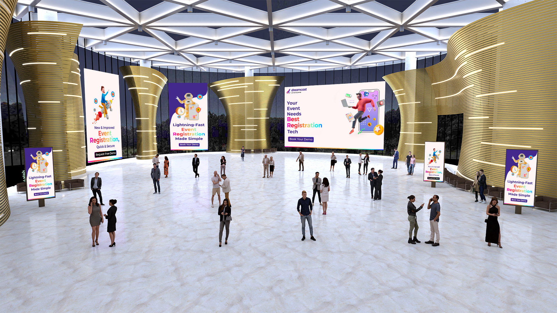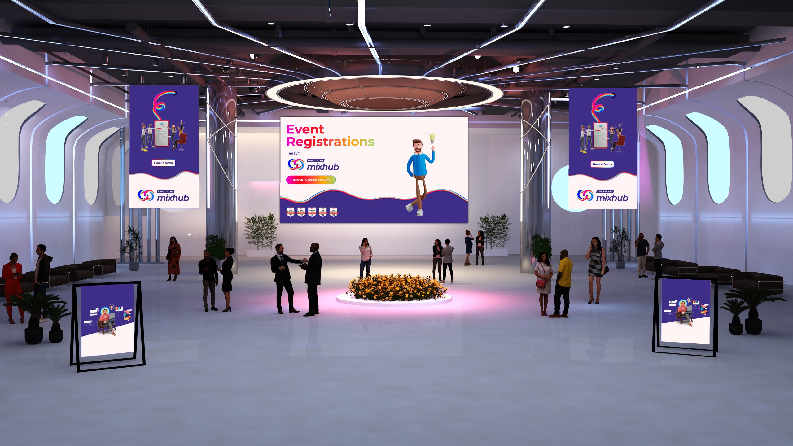 El entorno virtual 3D ofrecido por DC Mixhub está diseñado para replicar la atmósfera e interacciones de los eventos físicos, permitiendo a los participantes establecer redes, colaborar e interactuar entre sí en tiempo real. Los asistentes pueden navegar por espacios virtuales visualmente impresionantes, interactuar con stands virtuales, asistir a presentaciones y participar en actividades interactivas, todo desde la comodidad de sus propios dispositivos. Este nivel de inmersión mejora el compromiso, fomenta conexiones y asegura que la experiencia del evento sea verdaderamente memorable.