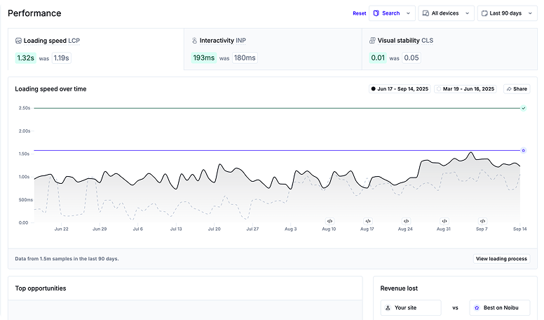 * Realmente me estoy adentrando en su nueva sección de monitoreo de rendimiento y poder ver tendencias en las métricas críticas de Web Vitals, así como puntos críticos que no están funcionando como deberían.