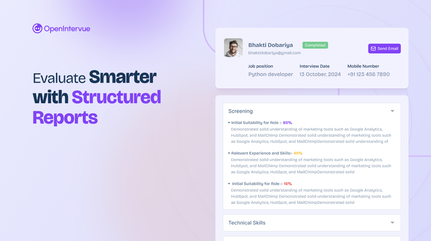 Cuando comenzamos a usar OpenIntervue, éramos escépticos. Pero no tardamos mucho en darnos cuenta de su verdadero potencial. Las evaluaciones impulsadas por IA son precisas y exactas, y las características personalizables nos permitieron adaptar el proceso a nuestras necesidades exactas. ¡Ahora es una parte integral de nuestra estrategia de contratación! Reseña recopilada por y alojada en G2.com.