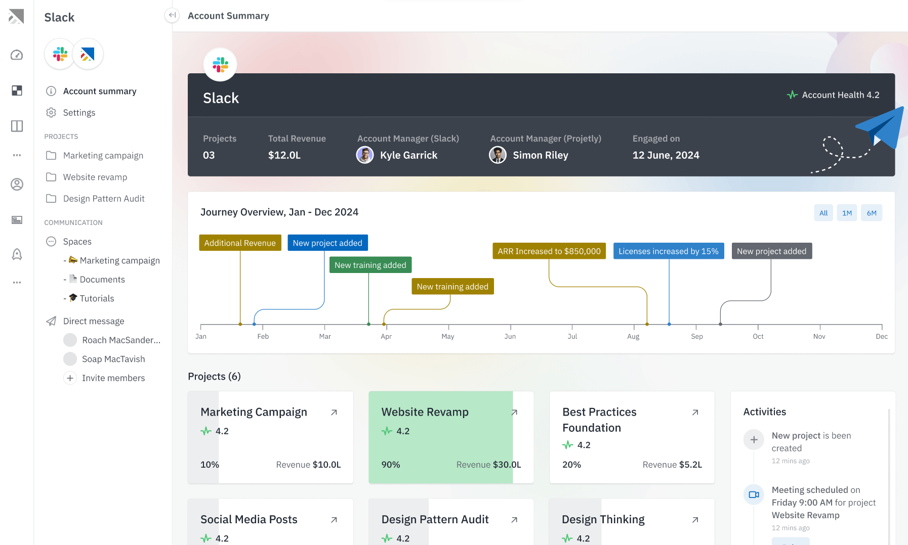 I appreciate how Projetly facilitates collaboration with customers during both the sales and onboarding stages, really standing out in these areas. The handoff from sales to onboarding is much cleaner, and our customer success team benefits from full context without needing to chase sales for details. Internally, it's helped us run onboarding and implementation projects in a more structured way, with clear ownership and better visibility across teams. What I like most about Projetly is its ability to maintain momentum after a deal closes, providing clear visibility into execution, identifying what's moving versus what's stuck, and addressing retention as a go-to-market execution issue rather than just a customer success problem. It's helping us prevent churn before it shows up on the dashboard. Additionally, I enjoy the fact that Projetly integrates with other tools like CRM and Zoom, connecting everything into one cohesive execution flow without replacing them. The initial setup was pretty easy, allowing us to get up and running quickly using templates, and we didn't need heavy migration or a long onboarding to see value. Reseña recopilada por y alojada en G2.com.