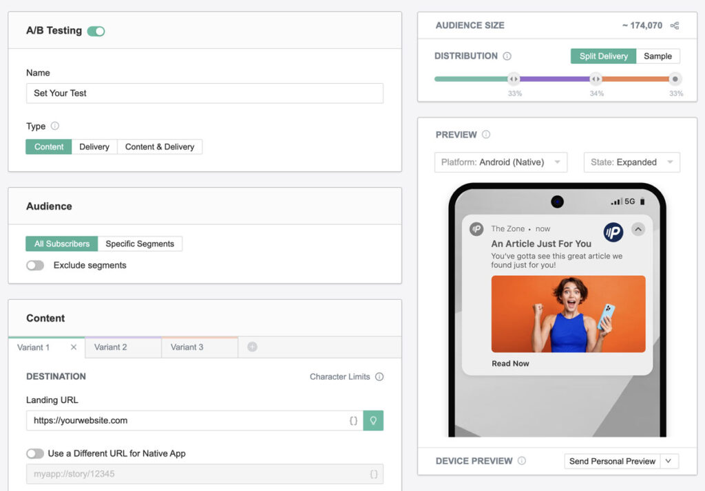 Las capacidades avanzadas de segmentación de audiencia de Pushly permiten a las empresas ir más allá de los métodos básicos de segmentación. Al entregar mensajes altamente personalizados adaptados a las acciones y preferencias del usuario, las organizaciones pueden asegurar que sus comunicaciones resuenen con las audiencias en los momentos más oportunos. La plataforma admite opciones de mensajería tanto manuales como automatizadas, ofreciendo a los equipos la flexibilidad de mantener el control mientras optimizan la eficiencia. Esta adaptabilidad mejora el compromiso a través de diversas campañas, convirtiéndola en una solución versátil para estrategias de marketing diversas.