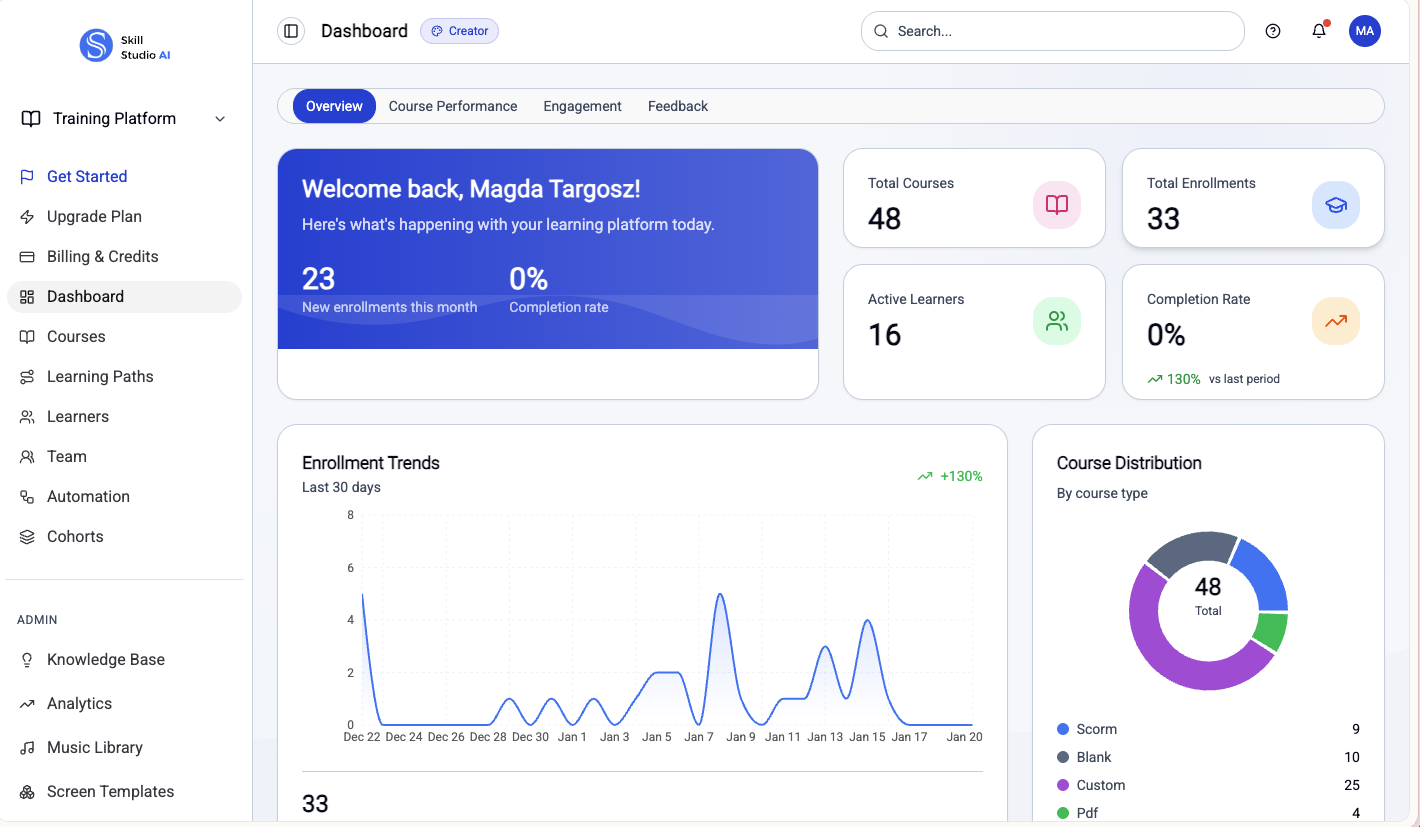 Skill Studio claramente pensó en el desafío que buscan resolver para sus clientes, en lugar de simplemente construir un montón de capacidades geniales. La naturaleza intuitiva de la UI/UX permite al usuario sumergirse sin problemas, de manera fluida y con mucha facilidad para producir un entregable de calidad utilizando Skill Studio. Reseña recopilada por y alojada en G2.com.