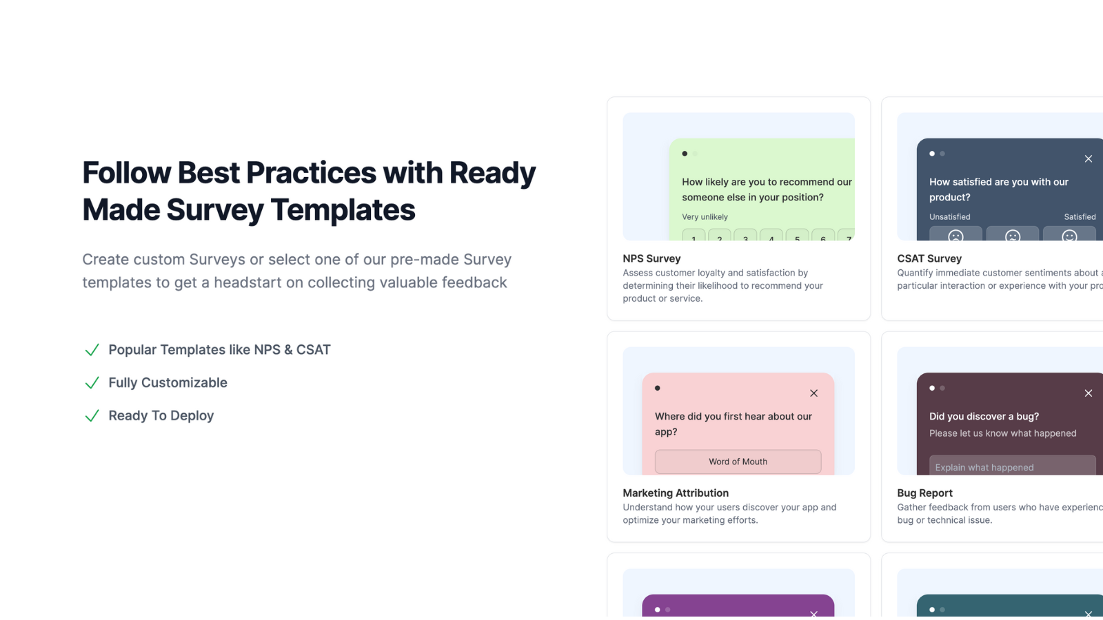 Kickstart your feedback collection with ready made survey templates for many use cases