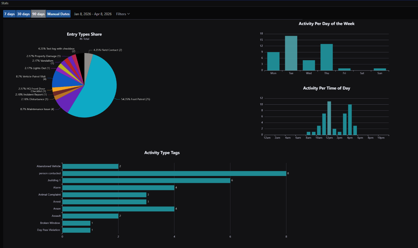 Con un motor de informes altamente personalizable, las empresas pueden crear Informes de Actividad Diaria (DAR), informes de incidentes y registros detallados adaptados a sus flujos de trabajo exactos. Los oficiales en el campo utilizan la aplicación móvil (iOS y Android) para enviar informes en tiempo real, capturar fotos y registrar actividades, mientras que la gestión mantiene una supervisión completa a través del panel de administración basado en la web.