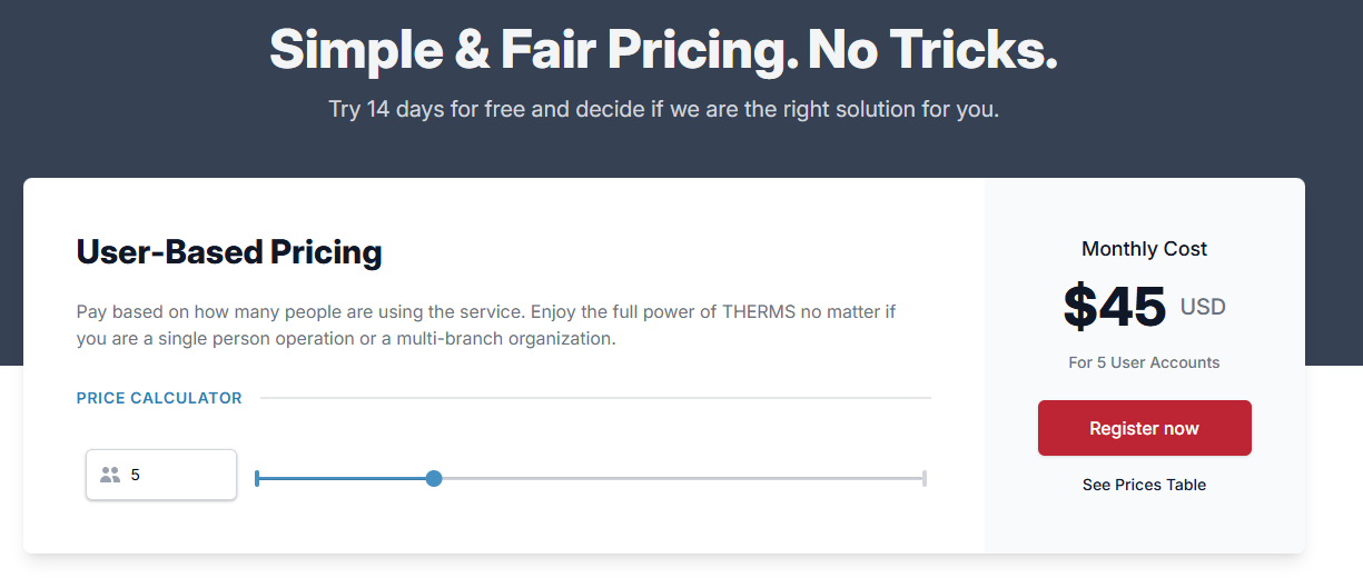 THERMS está diseñado para ser fácil de adoptar y escalar, con precios mensuales sencillos, sin contratos a largo plazo y sin tarifas de implementación iniciales. Esto permite a las empresas de seguridad comenzar rápidamente sin un compromiso financiero pesado, mientras se benefician de una plataforma completa de nivel empresarial.