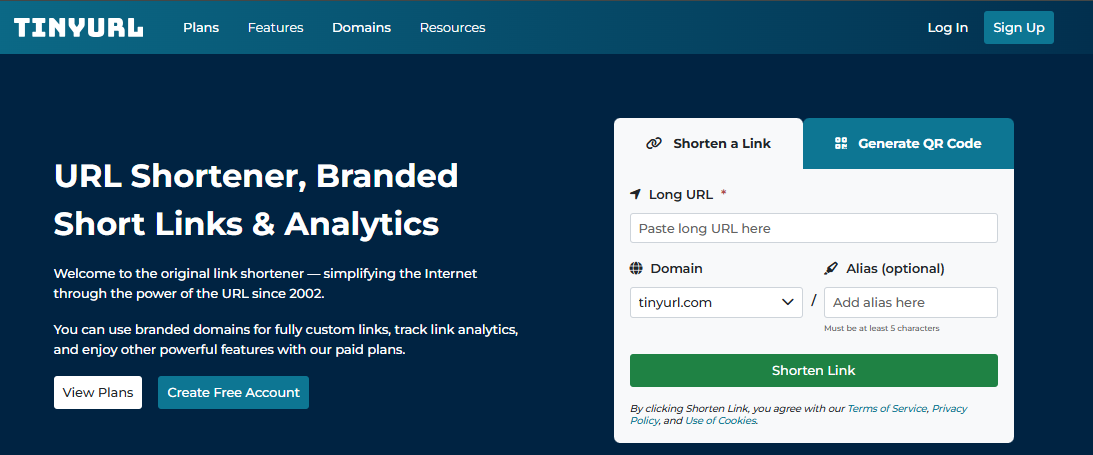 En su esencia, TinyURL convierte direcciones web largas en URLs más cortas que son más fáciles de compartir a través de canales como correo electrónico, SMS, redes sociales, materiales impresos, códigos QR y herramientas internas. A diferencia de muchos acortadores de URL básicos, los enlaces de TinyURL son permanentes por defecto, lo que significa que no caducan a menos que el usuario decida cambiarlos o desactivarlos. Esto hace que la plataforma sea adecuada para campañas a largo plazo, documentación y recursos de cara al público.