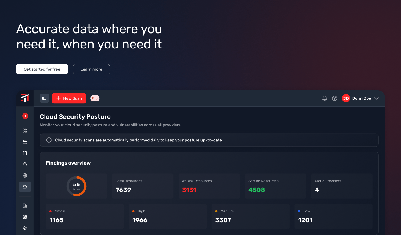 Automáticamente prueba tus configuraciones en la nube contra más de 150 puntos de referencia CIS en múltiples cuentas en la nube en AWS, Azure, GCP y más, para mantener una postura de seguridad de la información sólida.