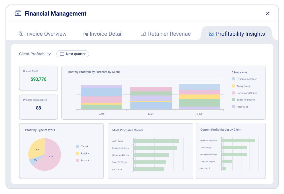 Accelo excelle dans l'intégration des opérations commerciales clés, en particulier celles liées à la facturation, à la gestion de projet, au CRM et au suivi du temps. La plateforme a considérablement réduit le fardeau du travail administratif en automatisant des flux de travail tels que la planification de projet, l'attribution de tâches et le suivi du temps, entre autres processus. Nous comptons sur Accelo pour surveiller toutes les heures facturables, ce qui nous aide à mieux comprendre nos marges bénéficiaires et à évaluer la productivité des employés. De plus, nous l'utilisons pour suivre l'activité financière liée à la gestion du travail, ce qui a abouti à des retenues significatives pour nos clients et notre personnel. Nous utilisons également Accelo en conjonction avec d'autres outils comme Microsoft 365, Google Workplace, QuickBooks, Slack, et plus encore. Les employés sont absolument gérés par cette plateforme, où leurs heures de travail sont enregistrées et les paiements effectués en fonction de leur performance. Avis collecté par et hébergé sur G2.com.