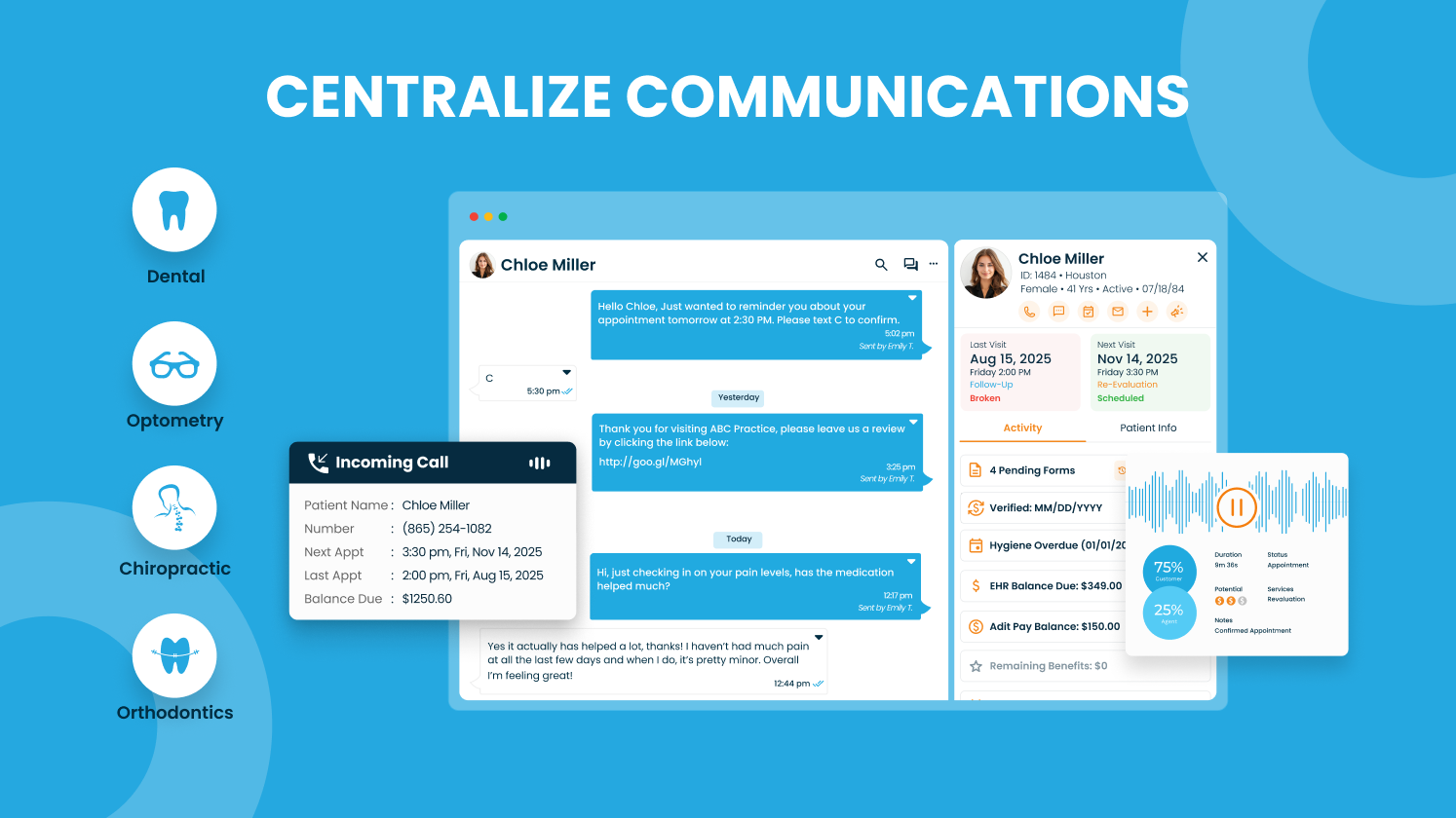 Adit Software a été une véritable révolution pour notre entreprise. Dès que nous avons commencé à l'utiliser, tout—de la communication avec les patients à la planification et au marketing—est devenu plus rationalisé et efficace. La plateforme est incroyablement conviviale, et l'intégration d'outils comme le suivi des appels, la planification en ligne et la messagerie automatisée nous fait gagner tellement de temps chaque jour.