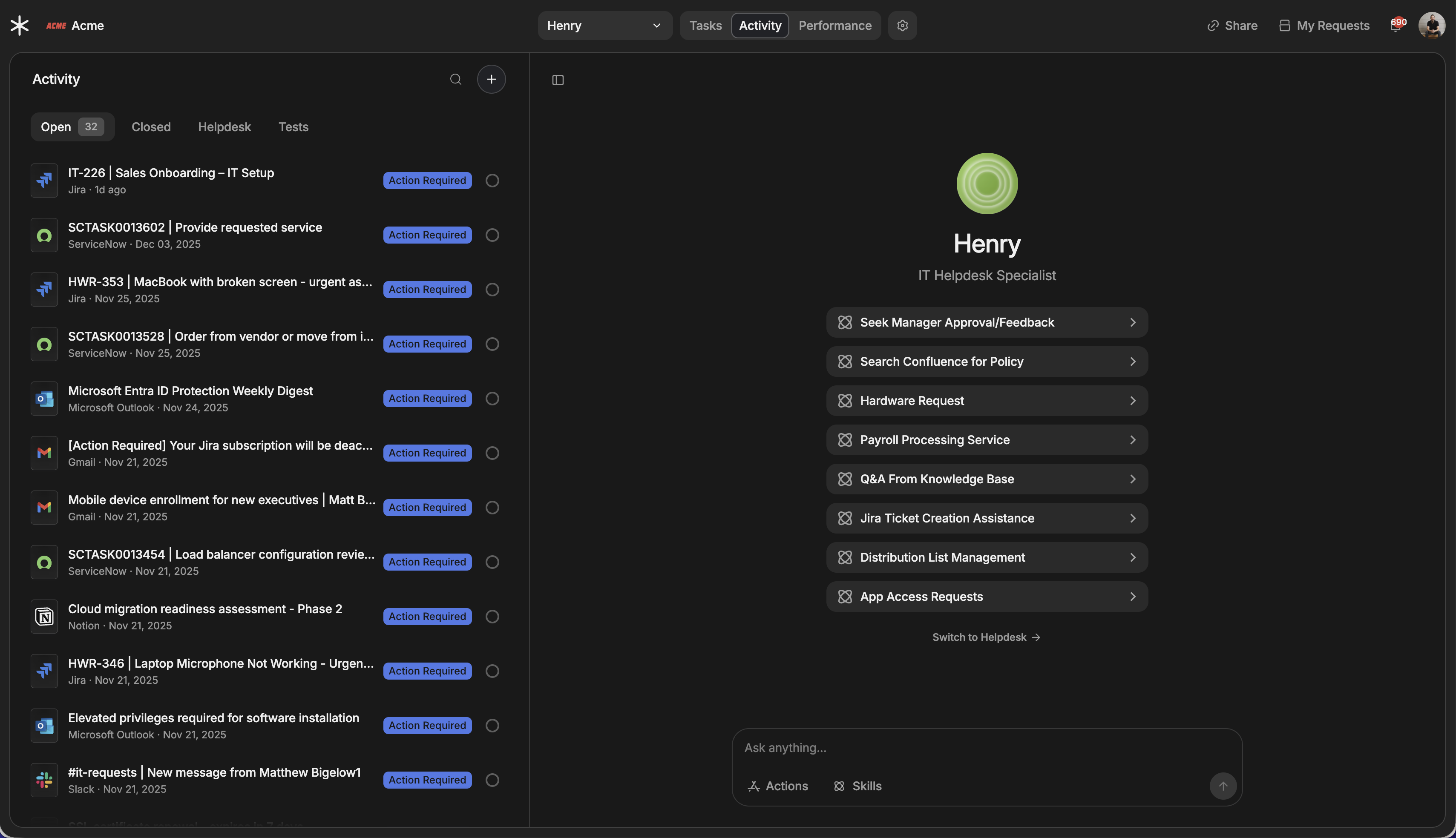- Orchestration multi-agents : Coordonne plusieurs agents IA, applications et sources de données de tout fournisseur, facilitant la collaboration à travers les flux de travail sans friction.