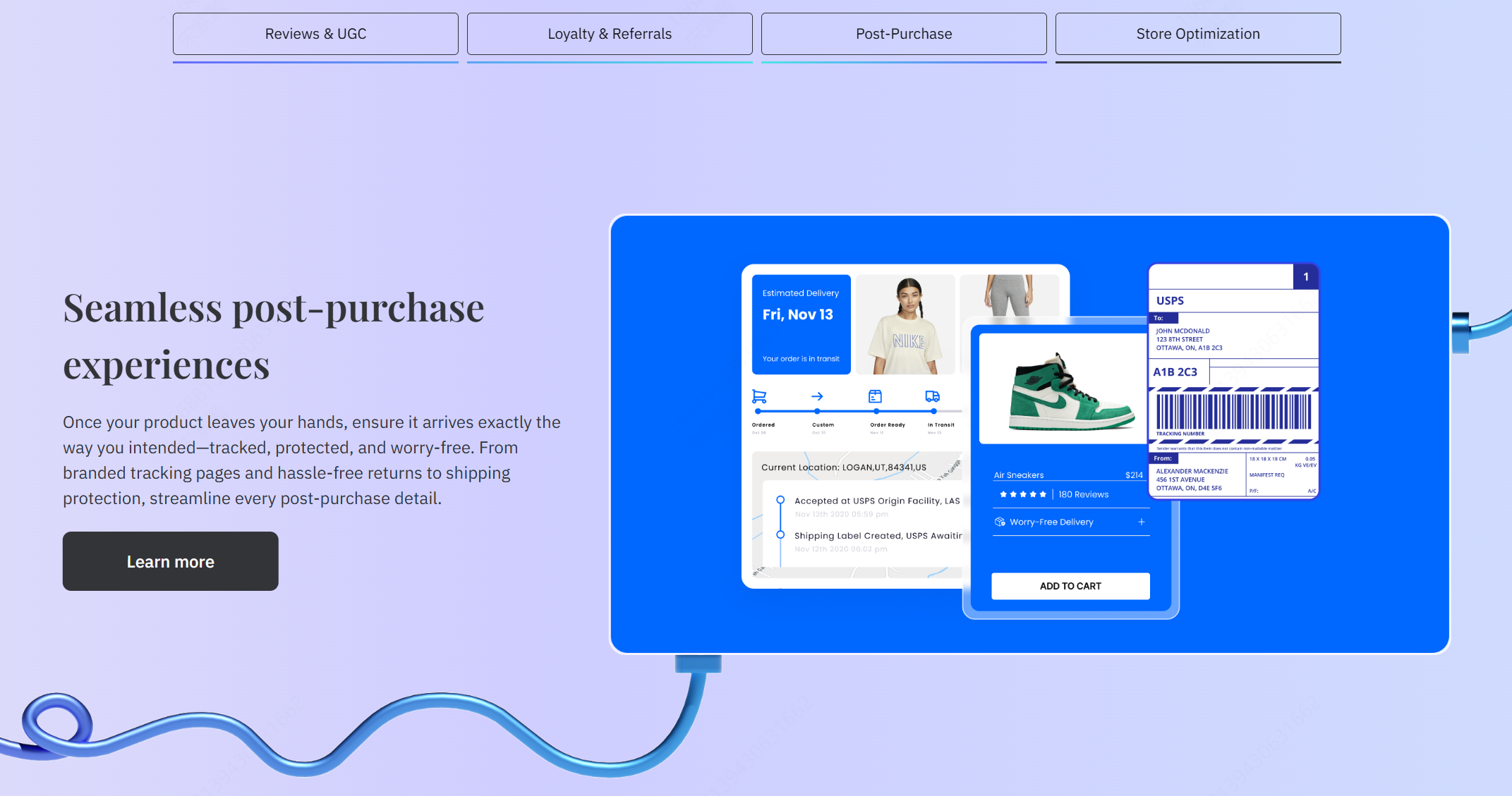 Notre approche à plateforme unique intègre des solutions basées sur les données pour le suivi des commandes, les retours, les avis, la fidélité, le SEO et les parrainages. Avec Channelwill, les marques peuvent créer des boutiques en ligne intelligentes, offrant des expériences après-vente de haute qualité pour augmenter les taux de conversion et incuber des clients fidèles. En utilisant notre configuration intuitive et nos intégrations transparentes, les marques de toutes tailles peuvent facilement établir la confiance parmi les consommateurs et augmenter les ventes.