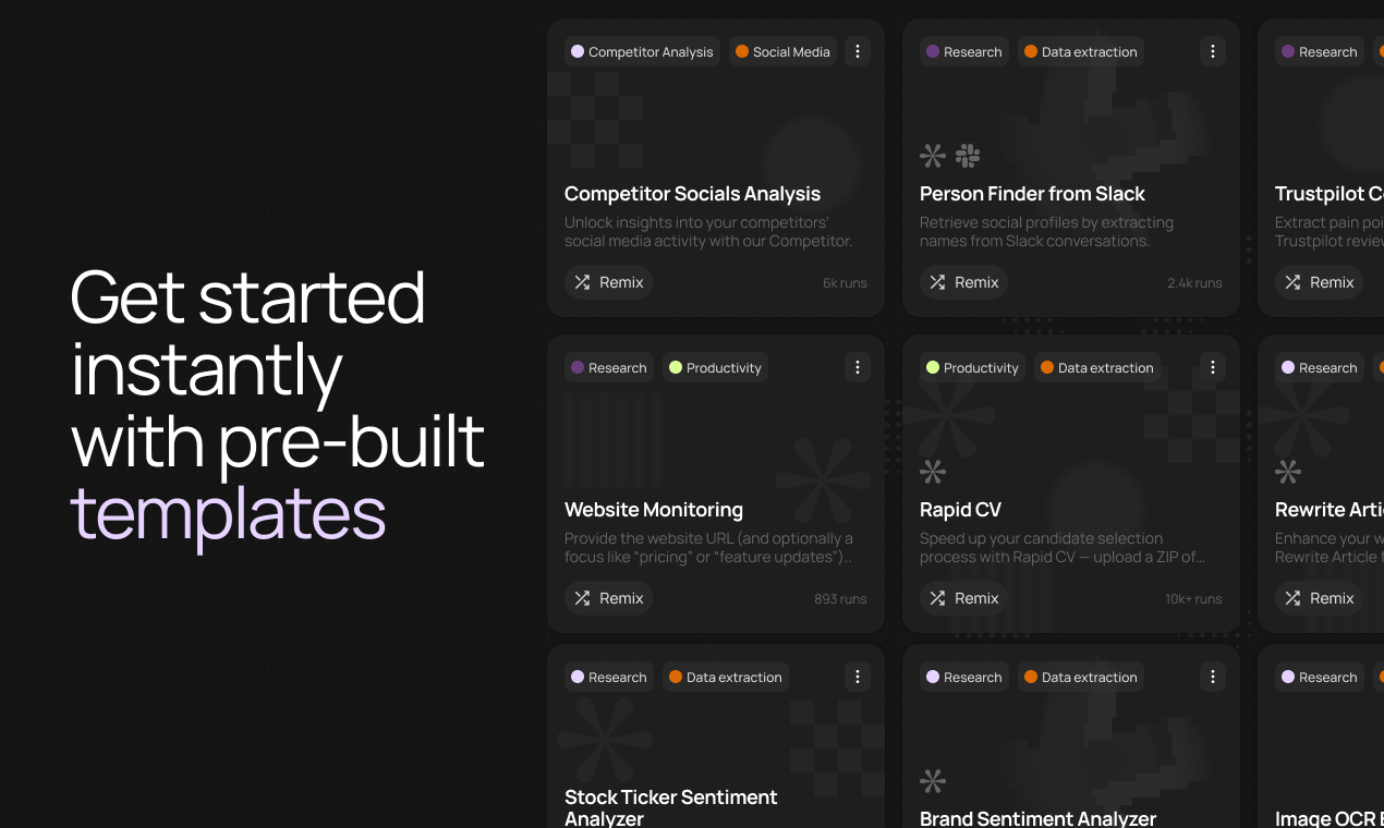 - Les fondateurs et petites équipes qui souhaitent réduire le travail manuel et répétitif, mais qui n'ont pas le temps ou les ressources pour le faire avec des outils d'automatisation traditionnellement plus techniques.