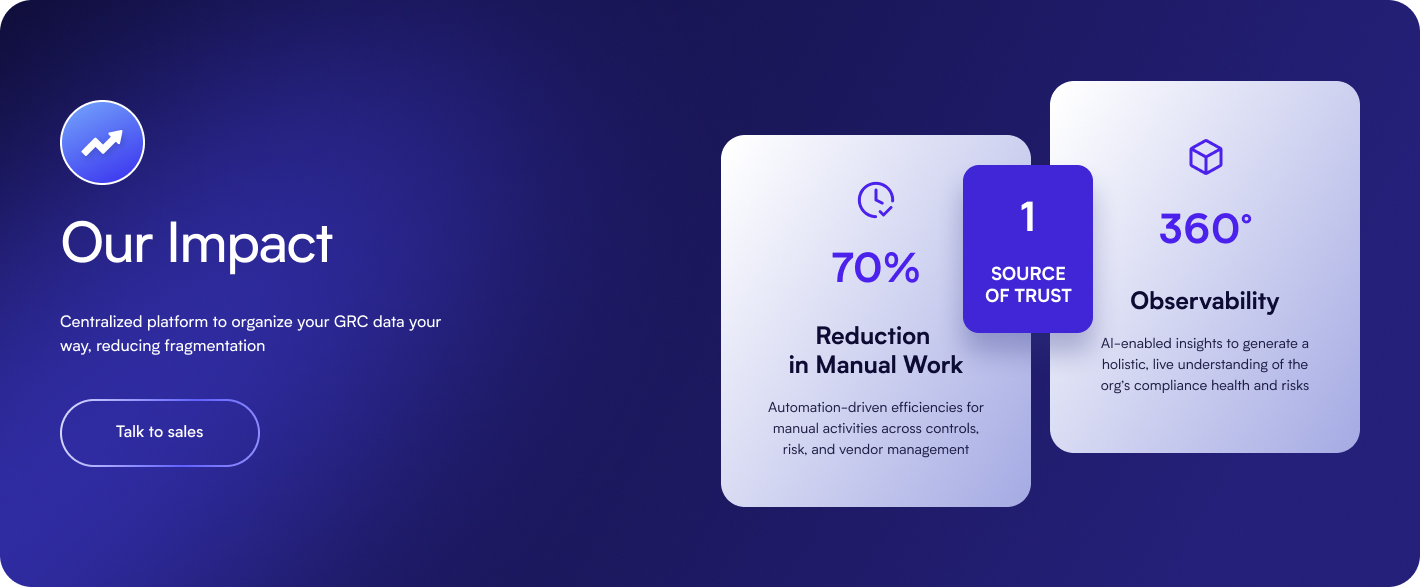 Si votre équipe GRC est petite mais puissante, Complyance est votre multiplicateur de force. Nous rendons possible l'échelle de la confiance, la réduction des risques et la démonstration d'un impact stratégique avec moins d'heures manuelles et plus de confiance.