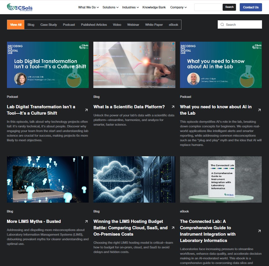 CSols peut améliorer considérablement l'efficacité et l'efficience d'une organisation scientifique et aider à orienter les décisions commerciales et la découverte scientifique, améliorer la qualité et permettre aux scientifiques de se concentrer sur la science.