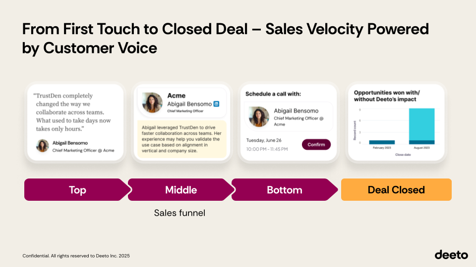 Deeto est une excellente plateforme pour créer des programmes de référence et de plaidoyer. J'adore la fonctionnalité de questions-réponses qui nous permet d'envoyer des questions sélectionnées aux clients et d'utiliser ensuite leurs réponses pour créer un contenu authentique et convaincant. Nous avons utilisé ces réponses pour rédiger des études de cas, des diapositives de vente et des publications sur les réseaux sociaux. J'aime aussi la fonctionnalité d'enregistrement vidéo, qui permet aux clients d'enregistrer des témoignages à leur propre rythme. Cela nous a aidés à développer le plaidoyer des clients sans un processus de production lourd. Le support de Deeto est excellent - je reçois des réponses rapides à mes nombreuses questions. Avis collecté par et hébergé sur G2.com.