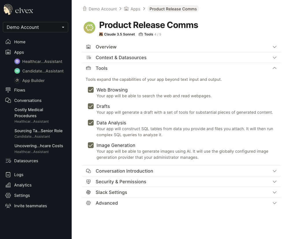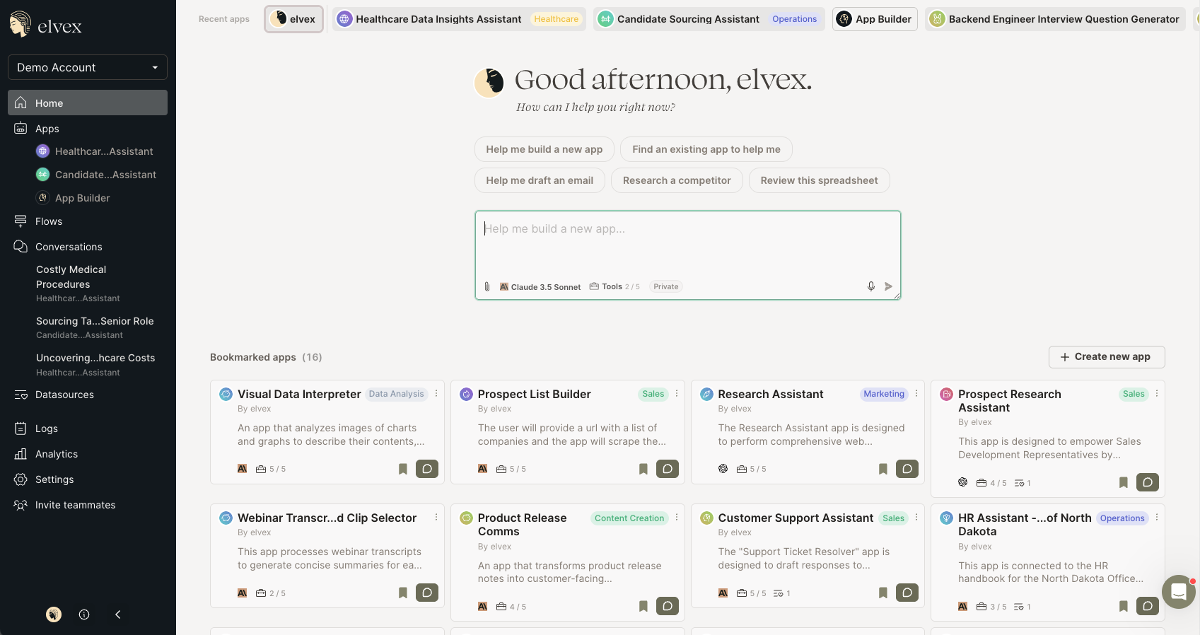 elvex se distingue par sa plateforme horizontale qui s'adapte à divers cas d'utilisation, de la création de contenu à l'analyse de données et à l'habilitation des ventes. Son approche agnostique en matière de modèles permet une intégration transparente des meilleurs modèles d'IA au fur et à mesure de leur émergence, garantissant que les organisations sont protégées contre l'obsolescence. Les caractéristiques clés d'elvex incluent des capacités d'intégration de données robustes qui connectent les bases de connaissances et les bases de données d'entreprise, permettant aux réponses de l'IA d'être enrichies avec un contexte commercial pertinent. La plateforme prend également en charge des flux de travail en plusieurs étapes qui peuvent se déployer à l'échelle de milliers d'utilisateurs, garantissant fiabilité et répétabilité dans les processus.