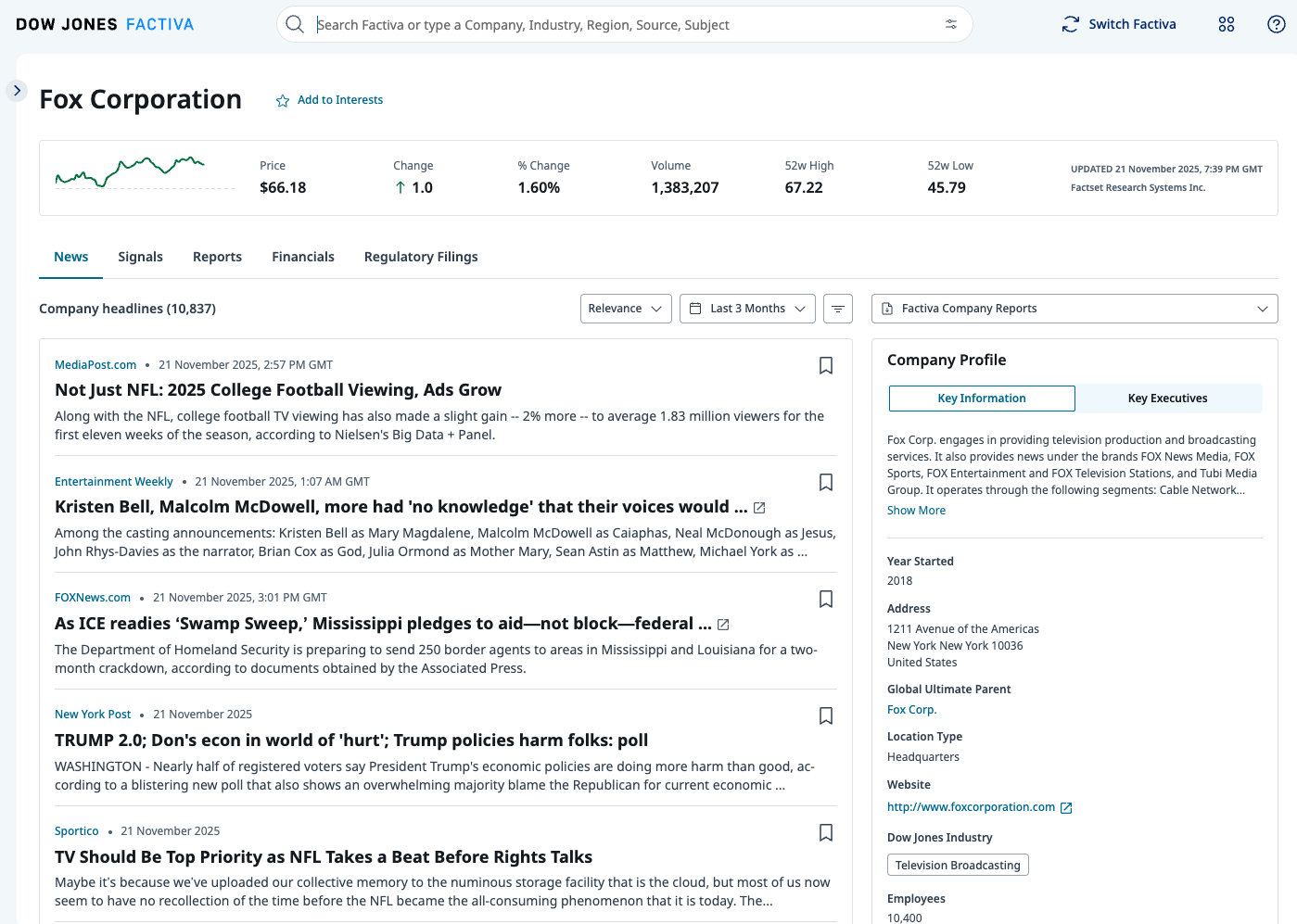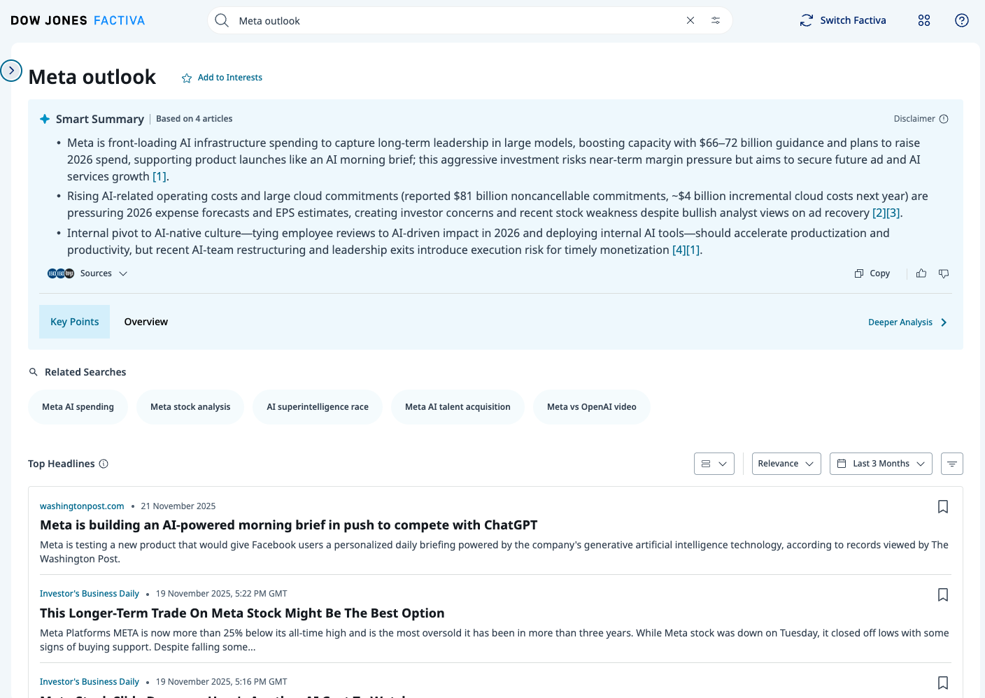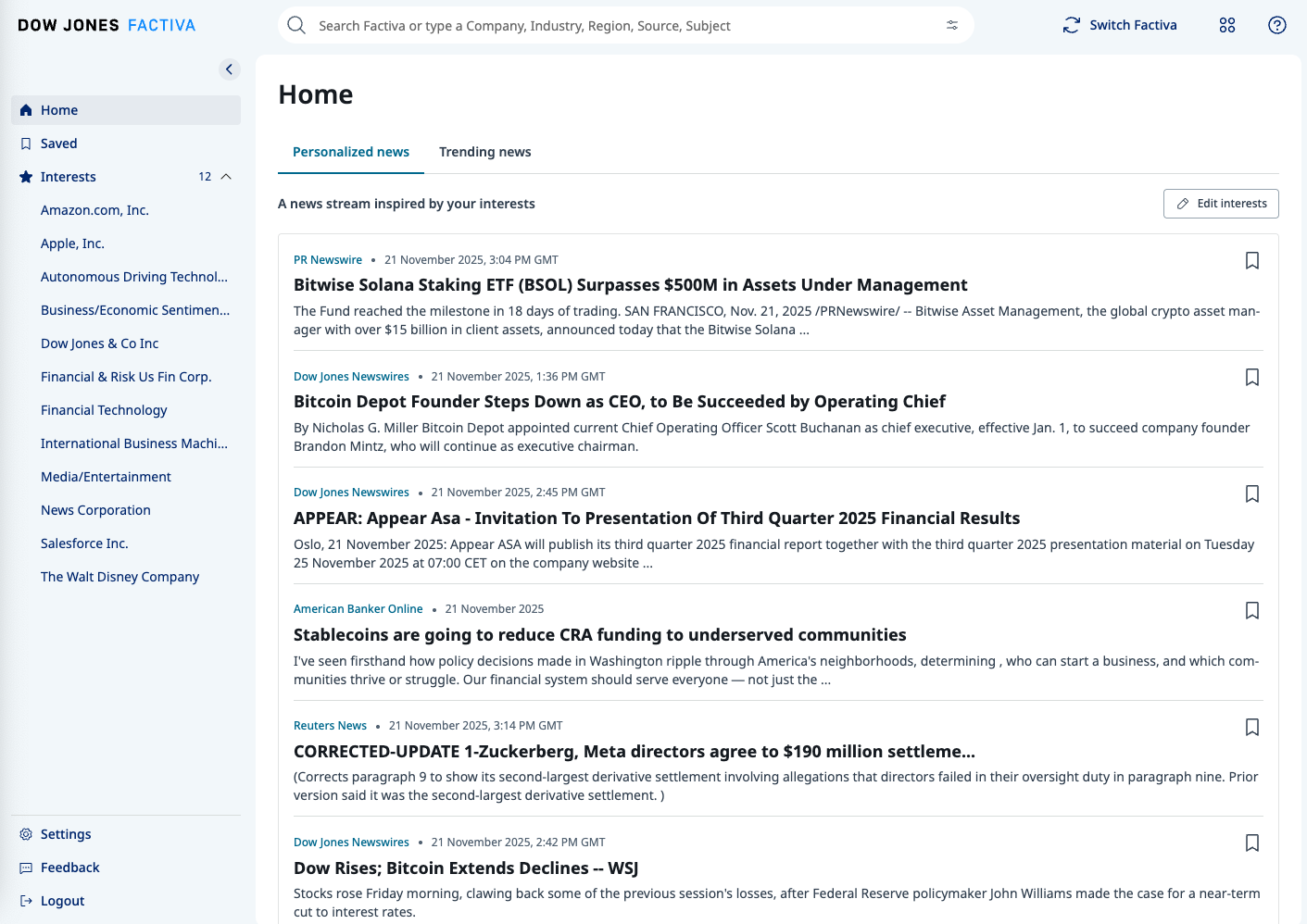 Factiva est un outil de recherche puissant et complet qui offre un accès à une vaste base de données de sources d'actualités mondiales, y compris des journaux, des revues, des magazines, et plus encore. Il est particulièrement précieux pour les professionnels et les chercheurs qui ont besoin d'informations crédibles et à jour provenant de milliers de sources premium comme The Wall Street Journal, Barron's, et des publications régionales. Ses capacités de recherche avancées, ses options de filtrage, et sa capacité à suivre les tendances au fil du temps en font une ressource essentielle pour l'intelligence économique, la recherche de marché, et la veille médiatique. Avis collecté par et hébergé sur G2.com.