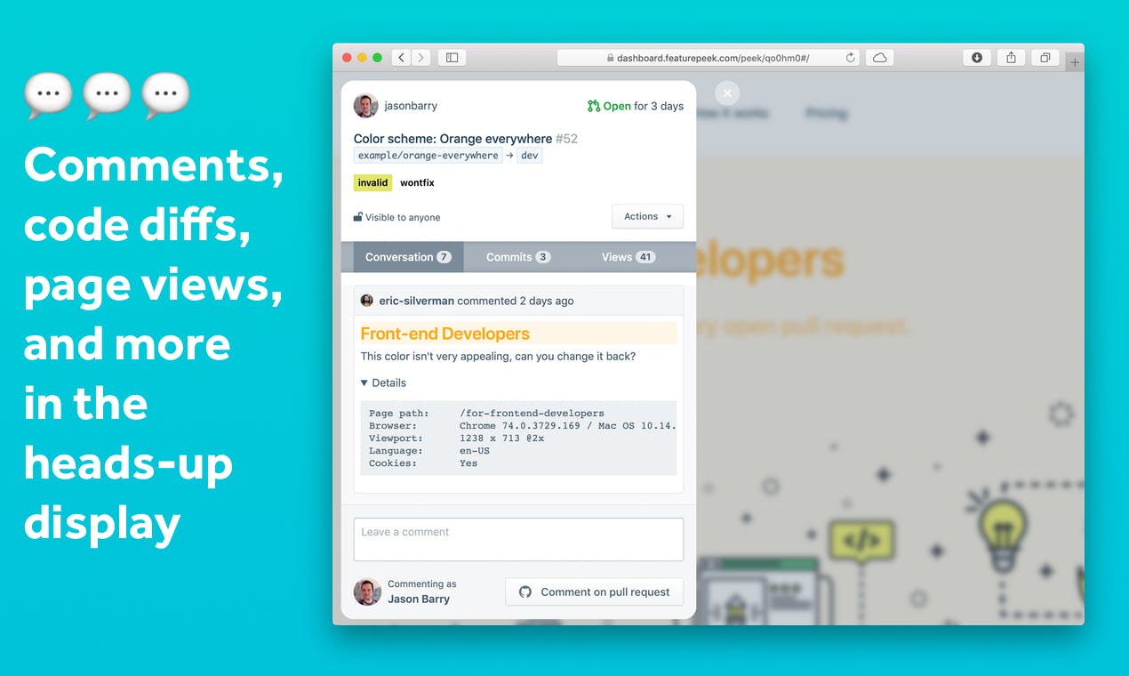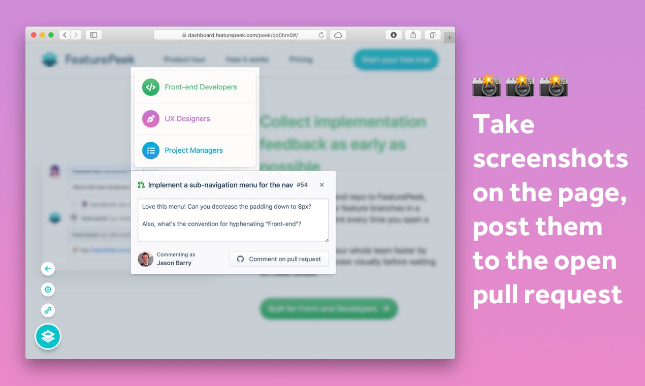 FeaturePeek brille par sa facilité d'utilisation et sa fonctionnalité rationalisée. Sa capacité à créer des environnements de prévisualisation pour chaque demande de tirage simplifie considérablement le processus de révision. La possibilité de commenter directement sur les interfaces utilisateur est un atout incroyable pour la collaboration. Cela garantit que tout le monde est sur la même longueur d'onde, réduisant ainsi les malentendus. De plus, les outils intégrés pour enregistrer les problèmes et capturer des captures d'écran au sein des environnements sont intégrés de manière réfléchie, résultant en une expérience fluide qui économise du temps et des efforts. Avis collecté par et hébergé sur G2.com.