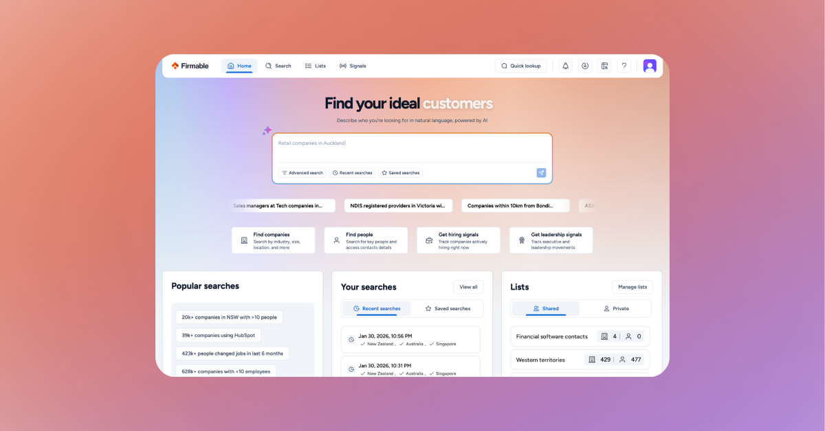 Quand j'ai commencé à travailler avec Firmable, Oscar m'a donné une démonstration vraiment informative et a rendu le processus d'inscription incroyablement facile. Depuis que j'ai rejoint, j'ai trouvé la plateforme simple à utiliser, et j'aime la précision avec laquelle on peut cibler les groupes de prospects que l'on souhaite atteindre. L'intégration avec Hubspot a également rendu les choses beaucoup plus faciles.